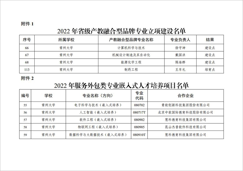 近日,江苏省教育厅公布了《2022年省级产教融合型品牌专业立项建设名单暨服务外包类专业嵌入式人才培养项目审核结果》(苏教高函〔2022〕7号),我校申报的9个专业榜上有名。计算机科学与技术、能源化学工程、机械设计制造及其自动化等3个专业入选省级产教融合型品牌专业建设点;制药工程专业入选省级产教融合型品牌专业培育点;软件工程、数据科学与大数据技术、人工智能、电子科学与技术、物联网工程等5个项目入选服务外包类专业嵌入式人才培养项目。