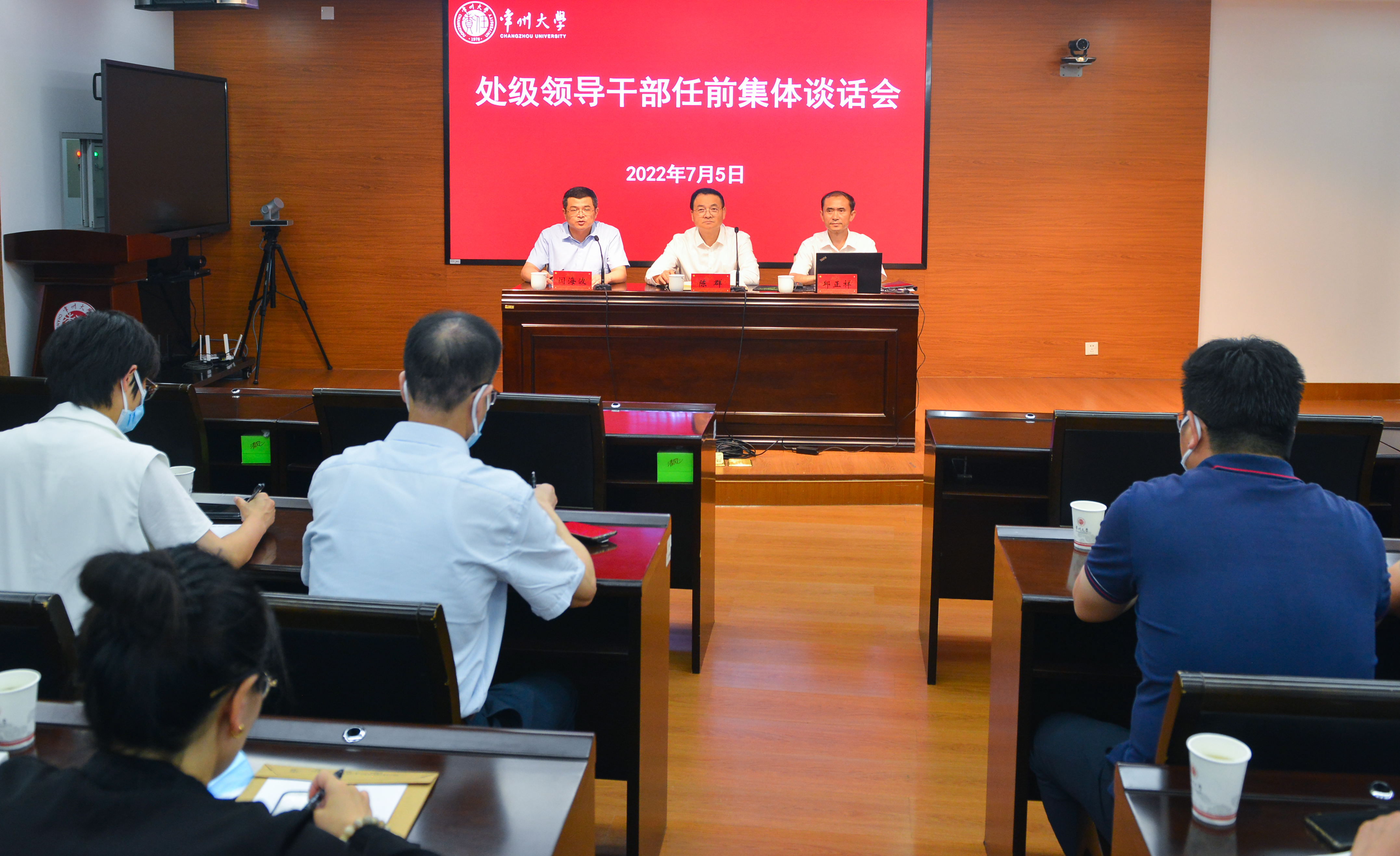 7月5日下午,学校在科教城校区文正楼第四会议室召开处级干部任前集体谈话会。党委书记陈群,党委常委、纪委书记、派驻监察专员邱正祥与新提任及调整干部进行集体谈话。党委常委、组织部部长闫海波主持会议。
