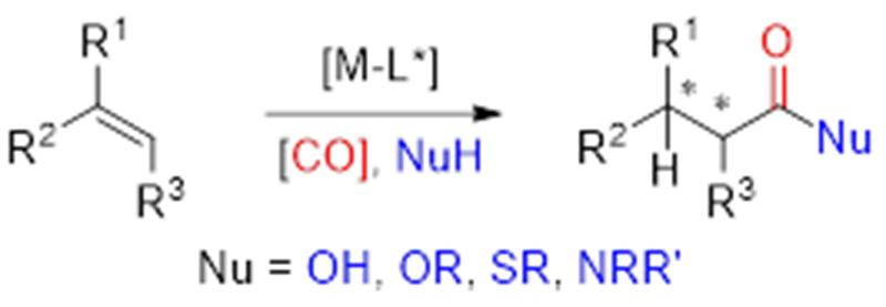 手性羧酸及其衍生物是有机化学中的一类重要化合物,广泛存在于医药、农药和精细化学品等中,烯烃的不对称氢羰基化反应可为这类化合物提供一条潜在高效快捷的合成途径,得到学术界和工业界的广泛关注,但也极具挑战性。自七十年代以来,众多化学家在该领域做了持久而深入的研究。该文章系统总结了半个世纪以来,过渡金属催化的烯烃的不对称氢羧化、氢酯化和氢酰胺化反应的研究进展、反应机理、应用实例以及该领域现阶段仍然面临的问题和挑战等,为不对称氢羰基化反应的后续研究提供了参考。史一安团队在烯烃的氢羰基化反应,包括不对称氢酯化和氢羧化反应进行了长达十年的系统而深入的研究。团队研究工作得到了常州大学和国家自然科学基金等的大力支持。(通讯员/任涛 审核/张屹 编辑/孙悦)