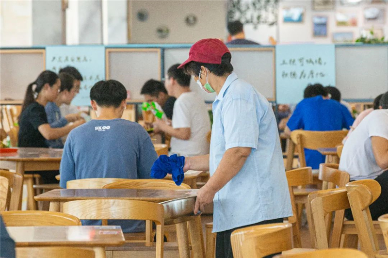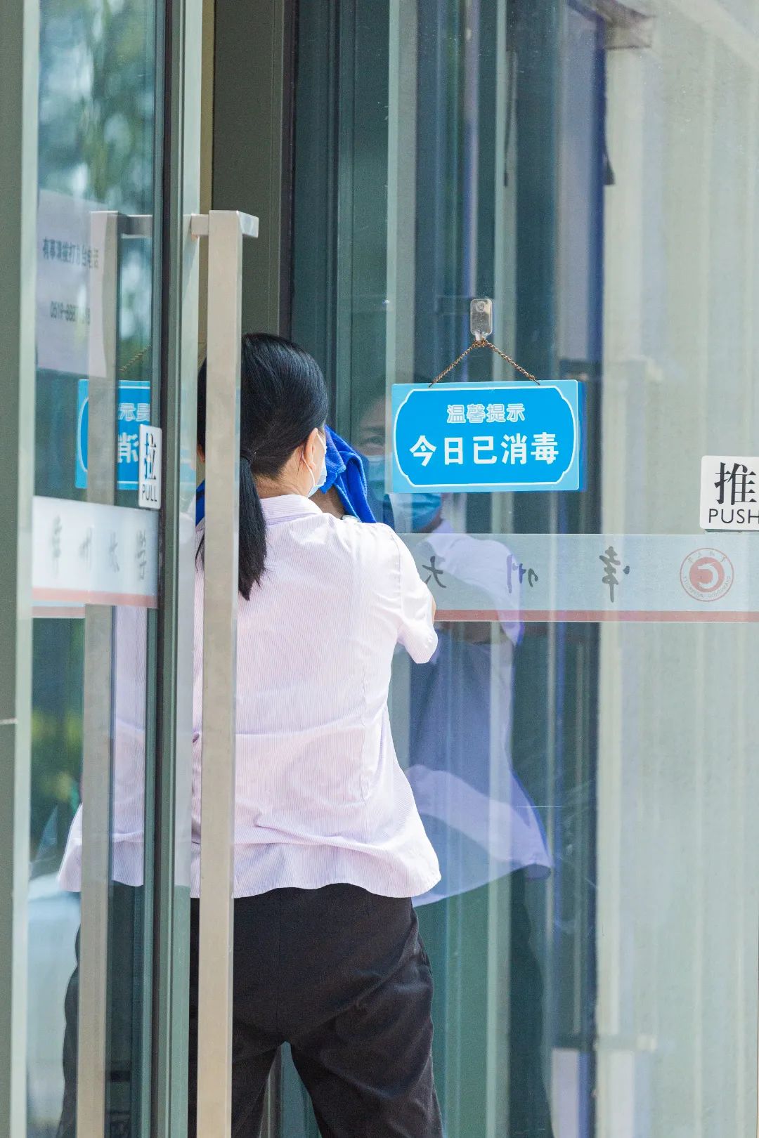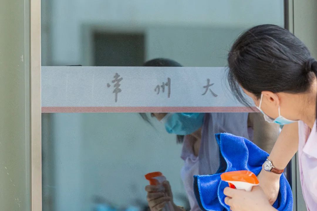 暑假,大部分同学离校回家,但仍能看到宿管阿姨们的身影。她们依旧不放松警惕,保障着宿舍的安全:日常消杀、测量体温、打扫卫生、排查维护、例行修理……她们用自己的默默坚守换取每一位常大学子返校后的无忧生活。
