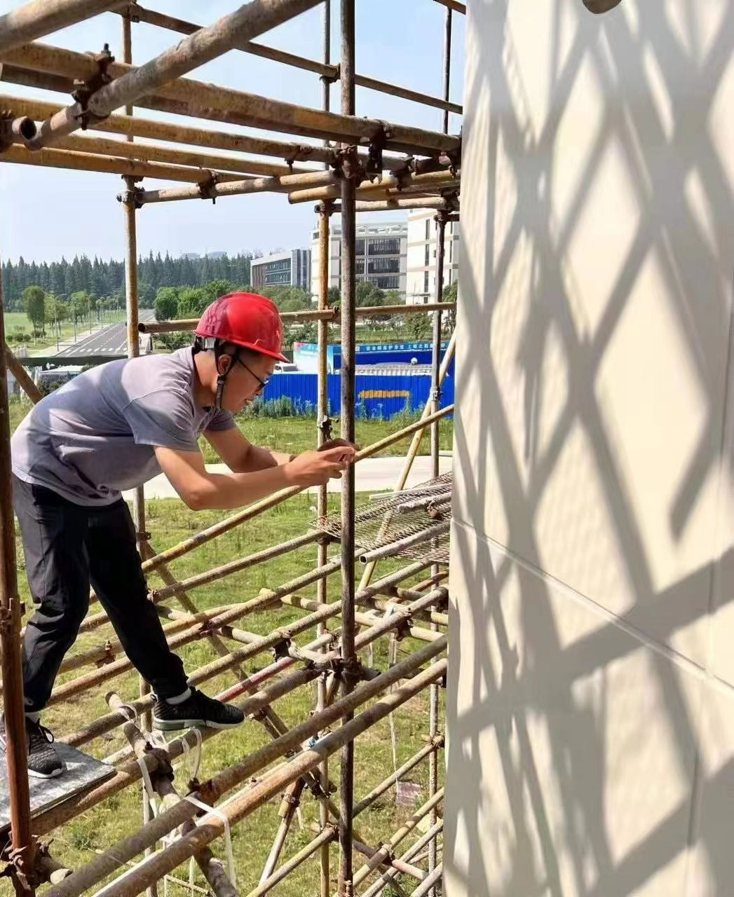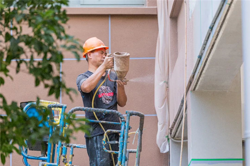 教学楼守护了一届又一届的师生们,如今,勤劳奋进的建筑者为了修缮它,在暑假继续坚守。烈日炎炎下,他们辛勤施工劳作,一切焕然新生。汗水糊住了眼睛,可却挡不住他们耕耘的脚步。