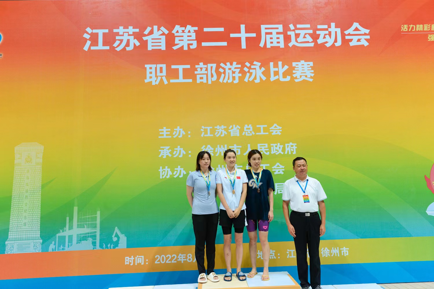 近日,江苏省第二十届运动会比赛圆满落幕。我校3名教职工在职工部游泳和羽毛球2个大项比赛中,喜获4金2银1铜的好成绩。