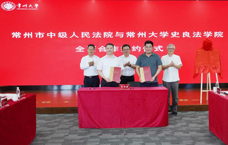9月19日下午,常州市中级人民法院(以下简称“常州中院”)与常州大学史良法学院在西太湖校区立言楼举行全面战略合作协议签约仪式。常州中院党组书记、院长曹忠明,党组成员、政治部主任张立群及相关部门负责同志,常州大学党委常委、纪委书记、派驻监察专员沈新奎,史良法学院名誉院长曹义孙,史良法学院相关负责人出席会议。
