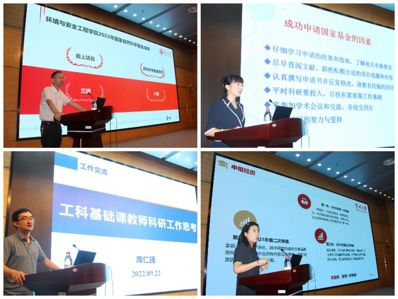 城市建设学院院长朱平华教授代表学院作“要数量、要质量、早抓不懈写华章,小同行、大同行、层层把关创辉煌”报告,国家杰出青年基金获得者石枫教授作“国家自然科学基金撰写经验”报告,2022年立项青年教师席仁强和罗璇与广大教师分享了自身学术经历和基金申报经验。(通讯员/杨松 审核/张屹 编辑/庄媛)