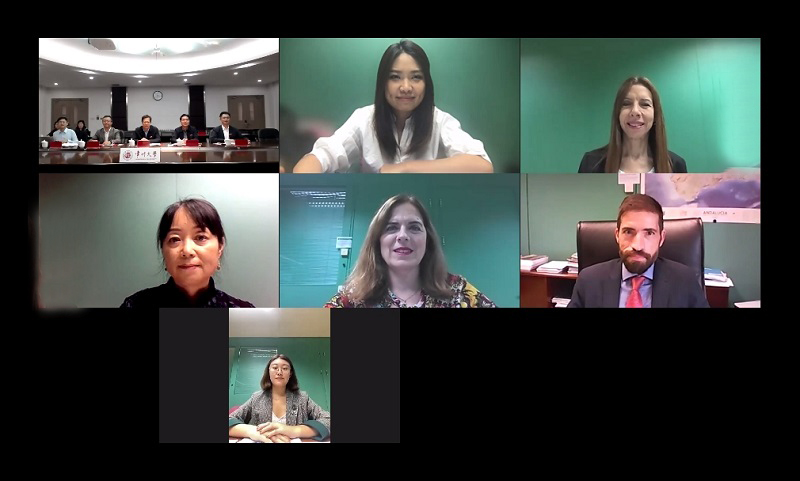 10月11日下午,常州大学西班牙安达卢西亚孔子课堂(以下简称“孔子课堂”)在线召开2022年理事会第一次会议,党委副书记、校长徐守坤,党委副书记、副校长戴国洪出席会议。外方理事长、西班牙安达卢西亚自治区教育发展与职业培训厅(以下简称“安达卢西亚教职厅”)高科技与教育转型司负责人安东尼奥·塞古拉·马雷罗,安达卢西亚教职厅国际项目处主管兼孔子课堂外方院长卡门·梅拉多·阿鲁亚雷斯,安达卢西亚教职厅国际项目服务部教育技术顾问兼孔子课堂外方联络人特蕾莎·梅丽诺出席会议。国际交流处相关负责人和孔子课堂中方负责人参加会议。