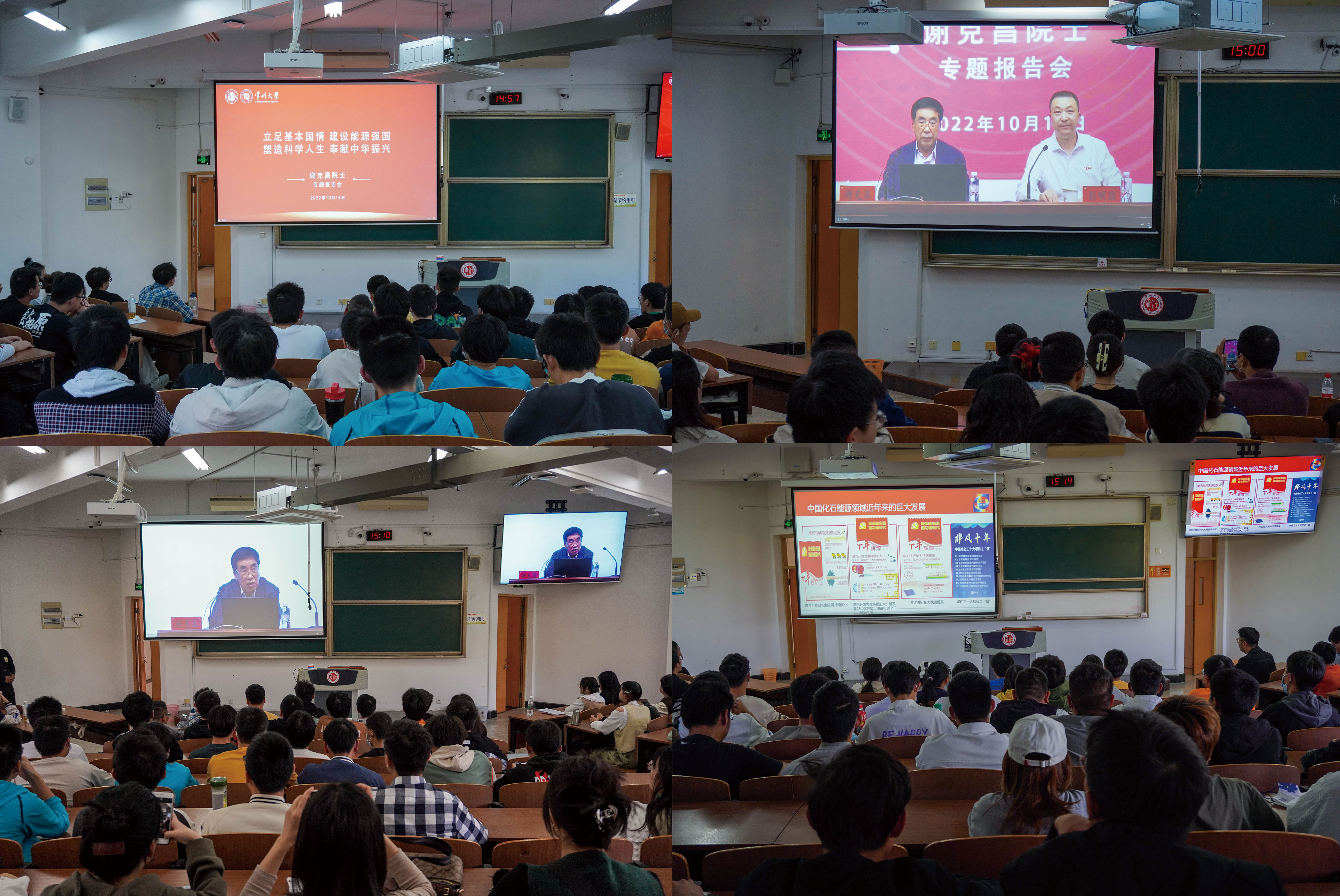 谢克昌以“立足基本国情 建设能源强国 塑造科学人生 奉献中华振兴”为主题,通过列举大量数据和案例,生动阐述了我国能源结构及能源发展面临的形势与挑战,引导师生全面理解、稳妥应对气候变化,科学领悟实现清洁化利用的化石能源亦是清洁能源的含义,清晰认识新能源与可再生能源将是未来能源增量主体,努力破解面临的技术性和系统性挑战。他结合二十大报告绿色发展战略提出,广大青年教师要加强科研工作,高度重视理论创新与新技术、新装备的持续研发,以科技创新与工程技术装备的发展,支撑我国油气勘探开发的长期发展。“以世界的胸怀和眼光思考人类,以创新的思维和能力适应时代,以务实的态度和作风服务社会。”谢克昌希望广大师生树立正确人生观、世界观、价值观,传承脚踏实地的敬业精神和志存高远的创业精神,为推动全球能源高质量发展贡献常大人的智慧。