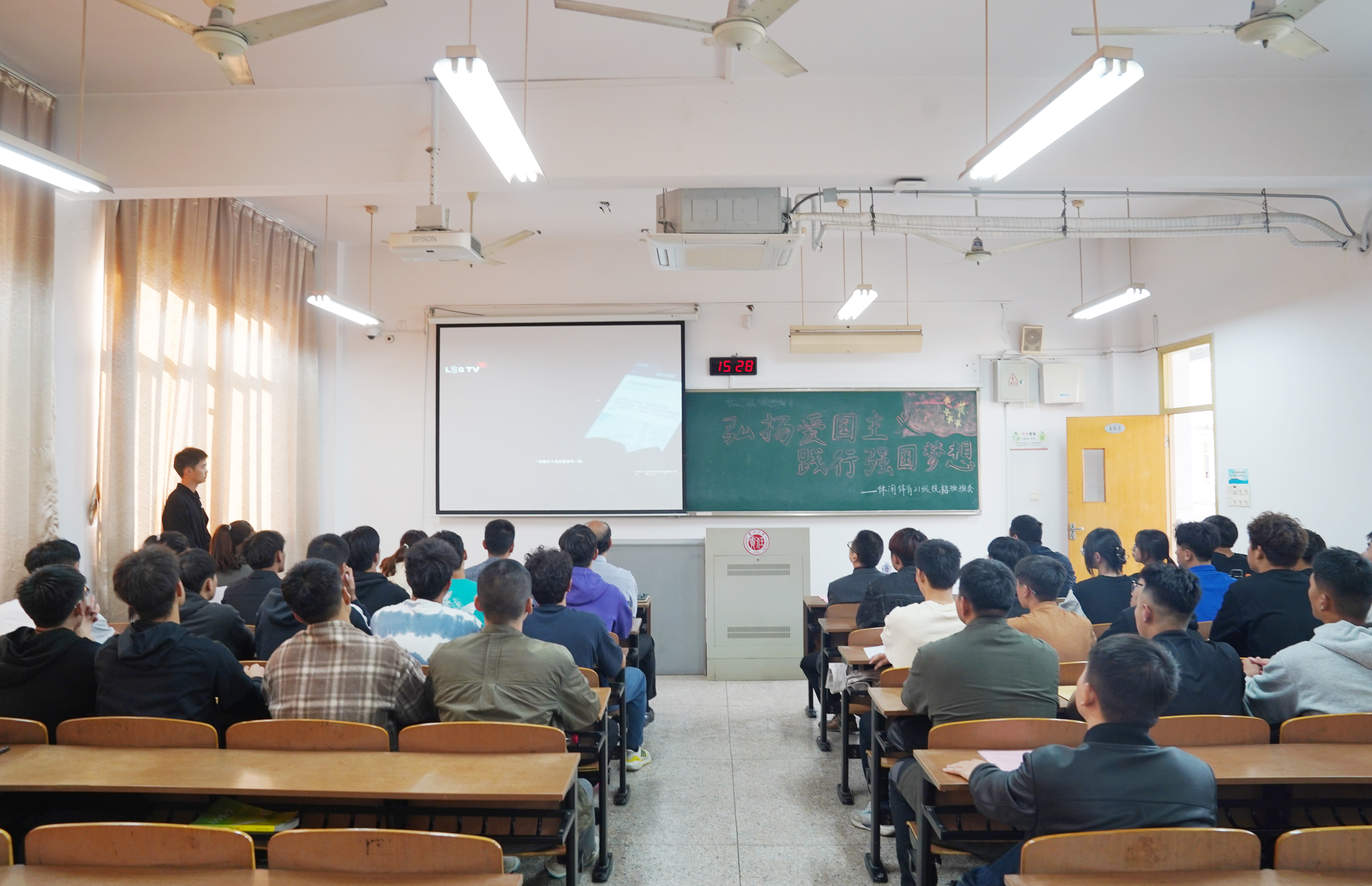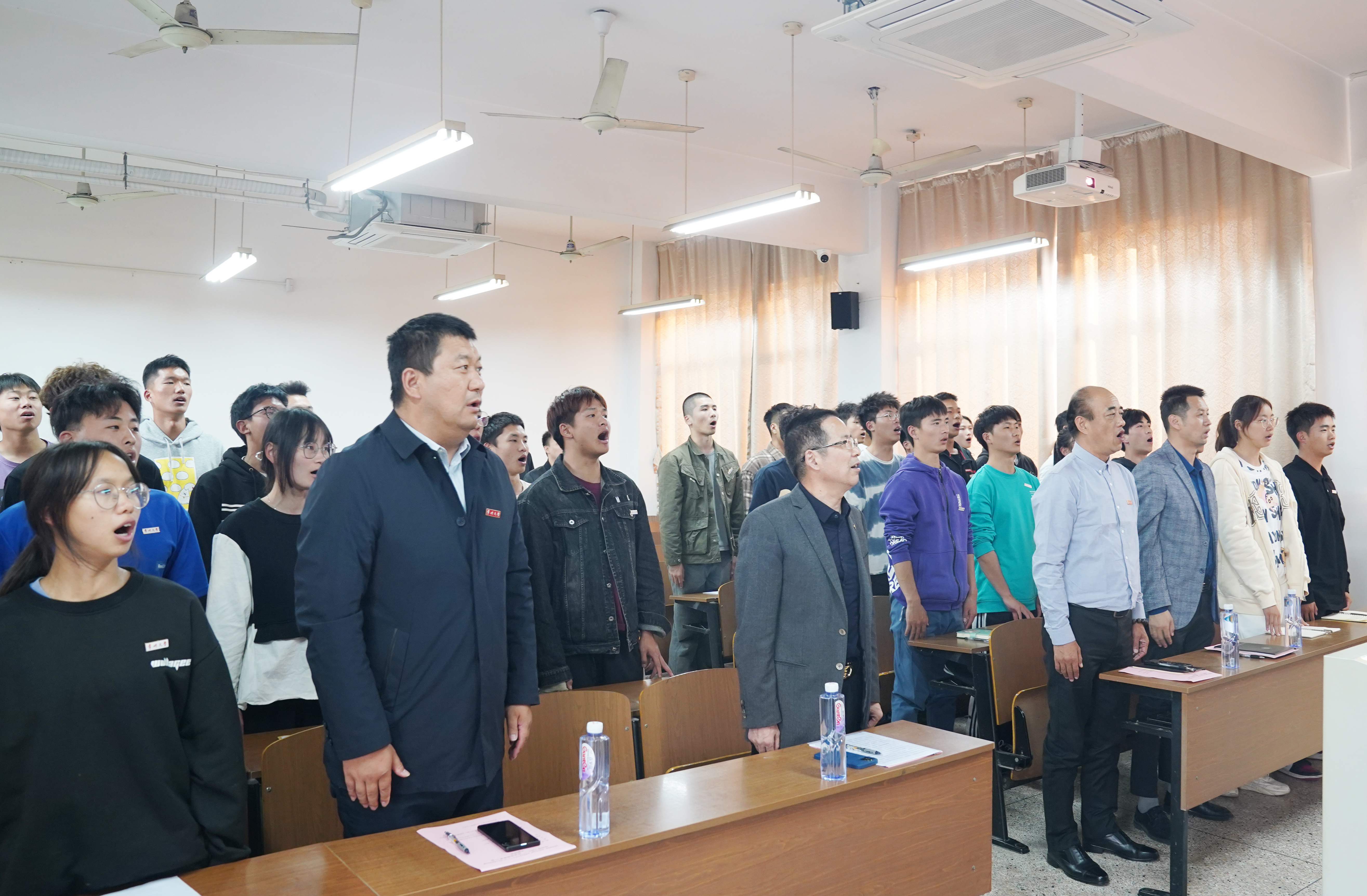班会最后,同学们邀请现场老师一起朗诵毛泽东诗词《沁园春·长沙》,抒发青春斗志和报国热情。(通讯员/赵博 审核/李荣 编辑/孙悦)