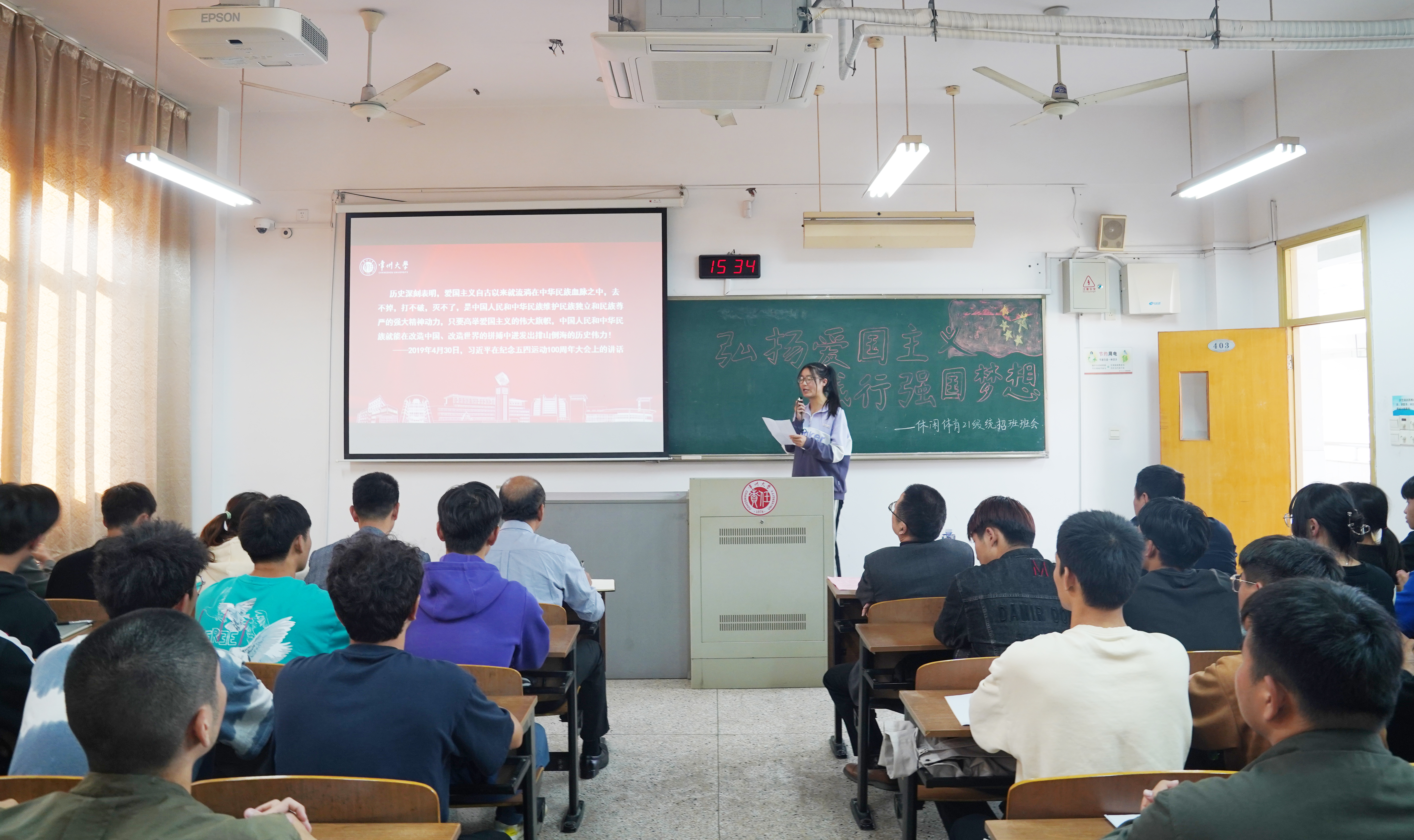 10月24日下午,体育21级统招班在科教城校区教学辅楼401教室开展“弘扬爱国主义 践行强国梦想”主题班会。本次主题班会根据学院党总支组织的“厚植爱国情怀 赓续红色血脉”学习党的二十大报告主题教育活动要求开展,党委常委、副校长陆锦冲出席班会,体育学院相关负责人、辅导员、体育2021级统招班全体同学参加班会。