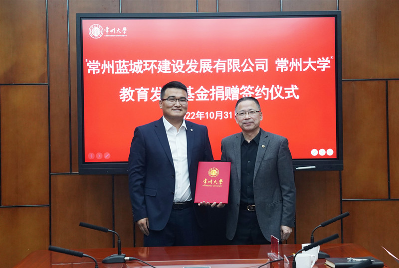 李杨表示,常州蓝城环建设发展有限公司将持续发挥企业社会责任影响力,传递社会正能量。他希望通过设立50万元常州蓝城环教育发展基金,在人才培养、学科建设、对外交流合作等方面助力母校更好发展。