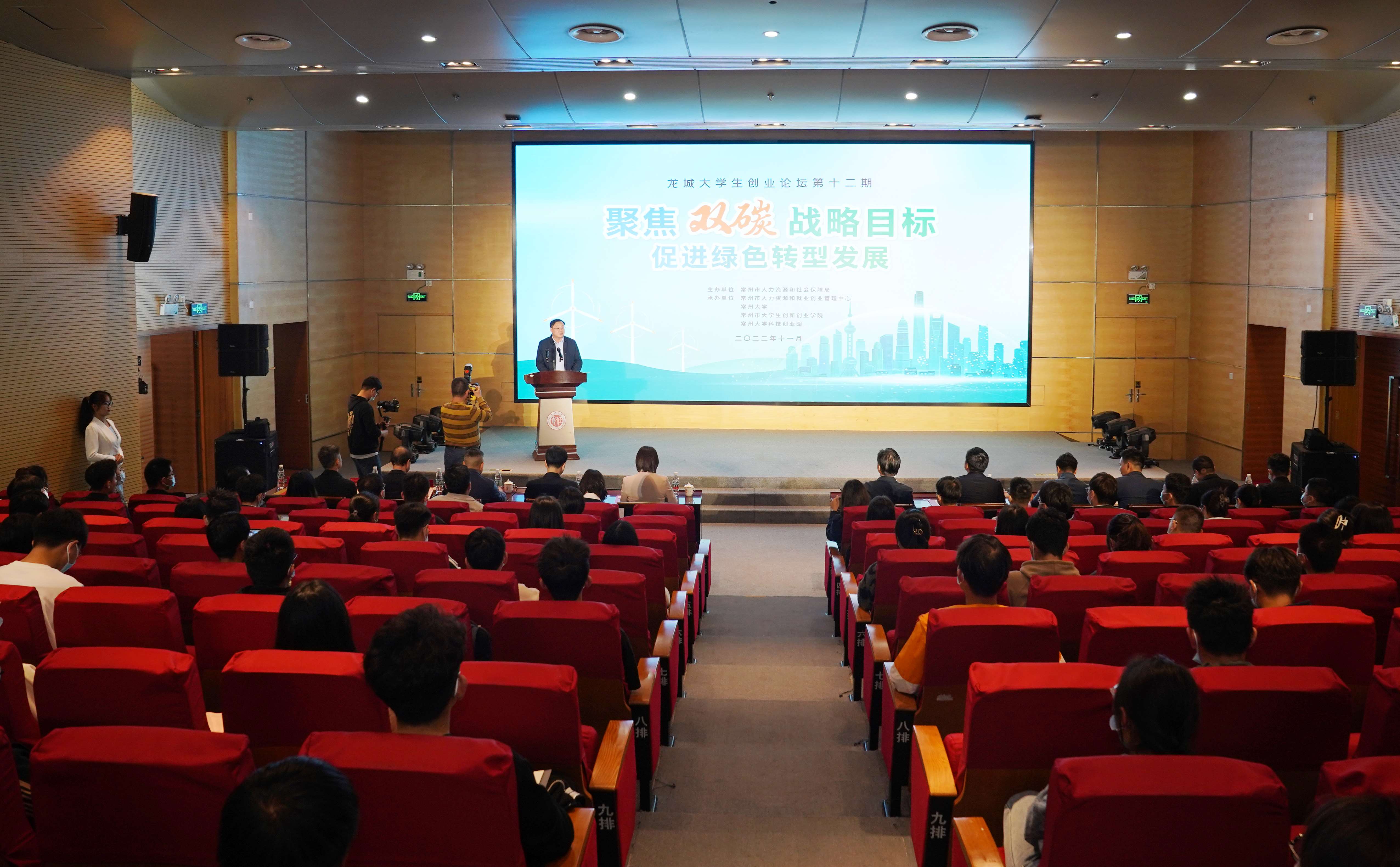 11月9日下午,由常州市人力资源和社会保障局主办,常州市人力资源和就业创业管理中心、常州大学、常州市大学生创新创业学院、常州大学科技创业园共同承办的第十二期龙城大学生创业论坛在科教城校区文彰楼报告厅举行。常州大学党委副书记、副校长戴国洪,常州市人力资源和社会保障局副局长苏叶,共青团常州市委副书记黄泽欣、常州市人力资源和就业创业管理中心副主任宗涛出席活动。常州大学创新创业教育办公室、常州大学科技创业园、校团委相关负责人,特邀创业指导专家、青年创业者代表及大学生双创项目代表等200余人参加活动,常州大学团委副书记(主持工作)田轶主持活动。