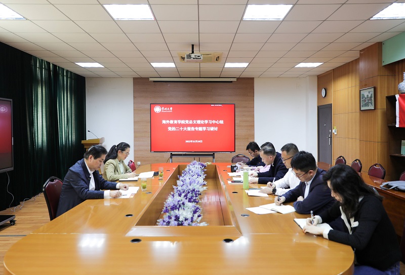 11月10日上午,党委副书记、副校长戴国洪,党委常委、宣传部部长杨琳在科教城校区明行楼514会议室巡学旁听海外教育学院党总支理论学习中心组党的二十大报告专题学习会。海外教育学院党总支理论学习中心组全体成员参加学习会,并结合实际工作谈学习心得。
