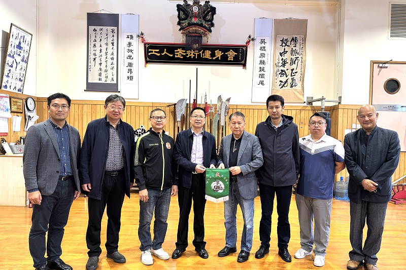 在澳门休闲体育协会理事长田春阳的带领下,陆锦冲一行访问了澳门工人武术健身会,并参观学习了澳门工人体育场设施与管理。澳门工人武术健身会成立70年来,在澳门不断开展武术健身活动,开办健身班、狮艺班,传授蔡李佛拳,提高了澳门武术运动水平,代表澳门在国际舞龙舞狮比赛中取得优异成绩。陆锦冲一行在澳门工人武术健身会训练馆与阮爱武和管理人员就舞龙、舞狮、武术等方面的教学和赛事合作进行了深入交流。