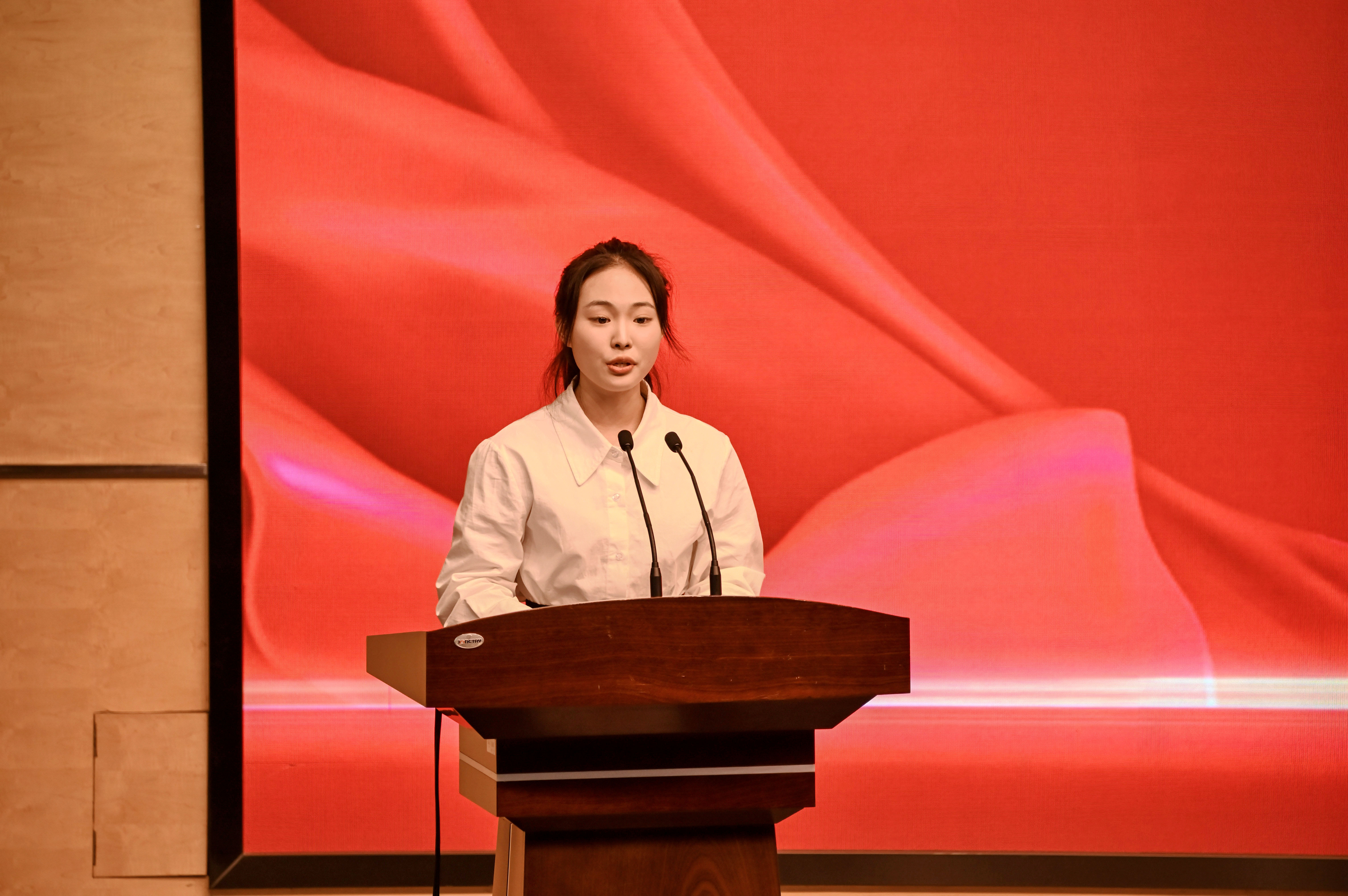 学生代表王宇慧分享了学习领悟党的二十大精神的心得体会,她表示,作为一名团员青年,要以实际行动学习宣传贯彻党的二十大精神、树立远大理想,做坚定理想信念的“追光者”,做勇担当肯负责的“奋斗者”,做守初心担使命的“奉献者”。