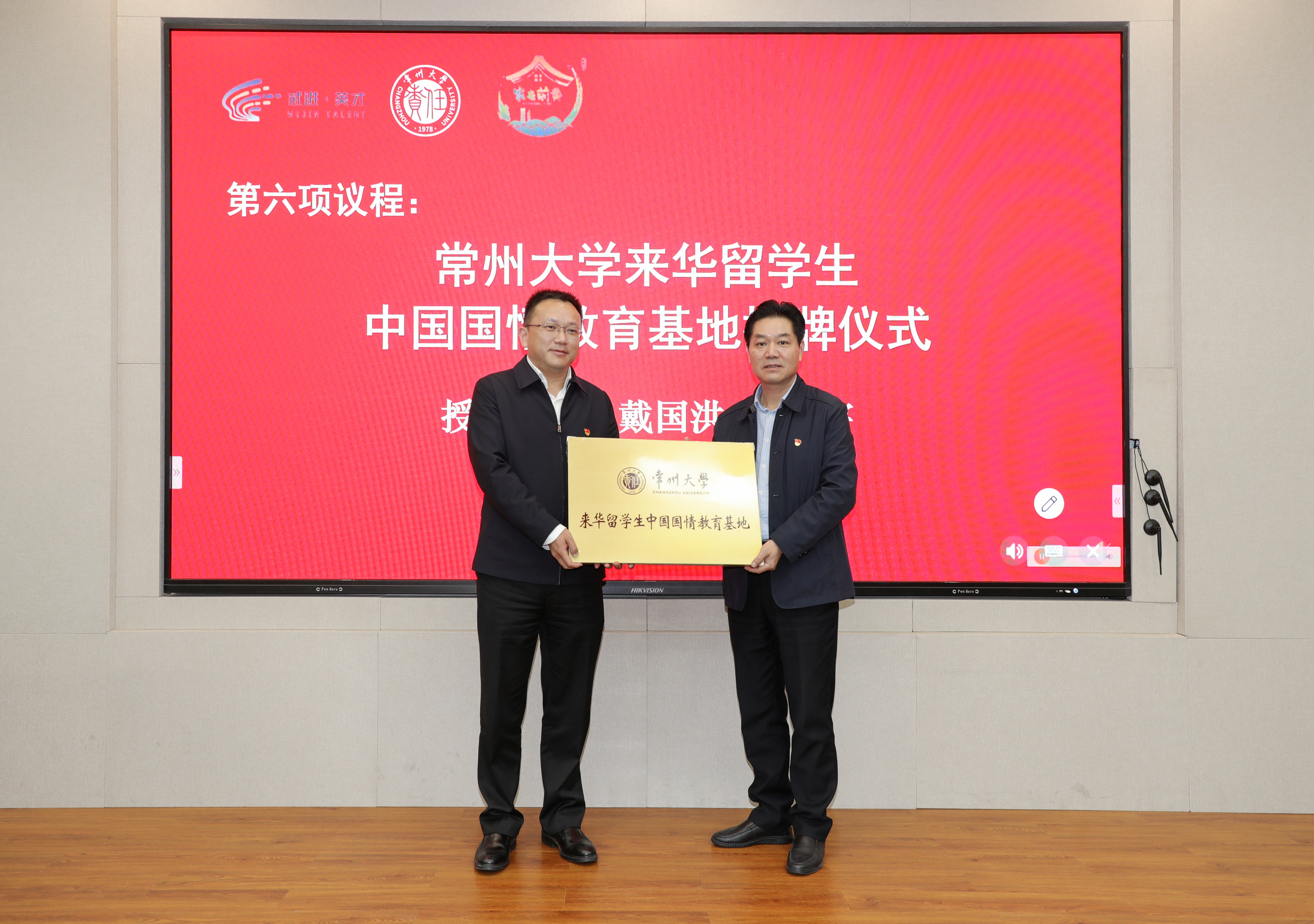海外教育学院负责人简要介绍了党建共建行动计划。海外教育学院与前黄镇将着力构建“组织联建、党员联管、要事联商、活动联办、资源联享”的党建交流平台,努力实现“党务、业务、服务”的良性互动和深度融合,促进双方发展同频共振、实现双赢。现场举行了海外教育学院党总支与前黄镇党委党建共建签约揭牌、海外教育学院教工党支部与武进武南管道设备有限公司党支部党建共建签约揭牌、“听潮揽才·耕读常新”人才会客厅揭牌、武进区海外联谊会顾问单位聘任和常州大学来华留学生中国国情教育基地授牌仪式。
