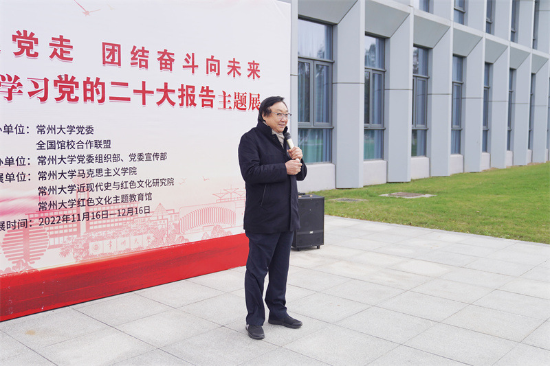 朱成山介绍了《常州大学学习党的二十大报告主题展》基本情况。
