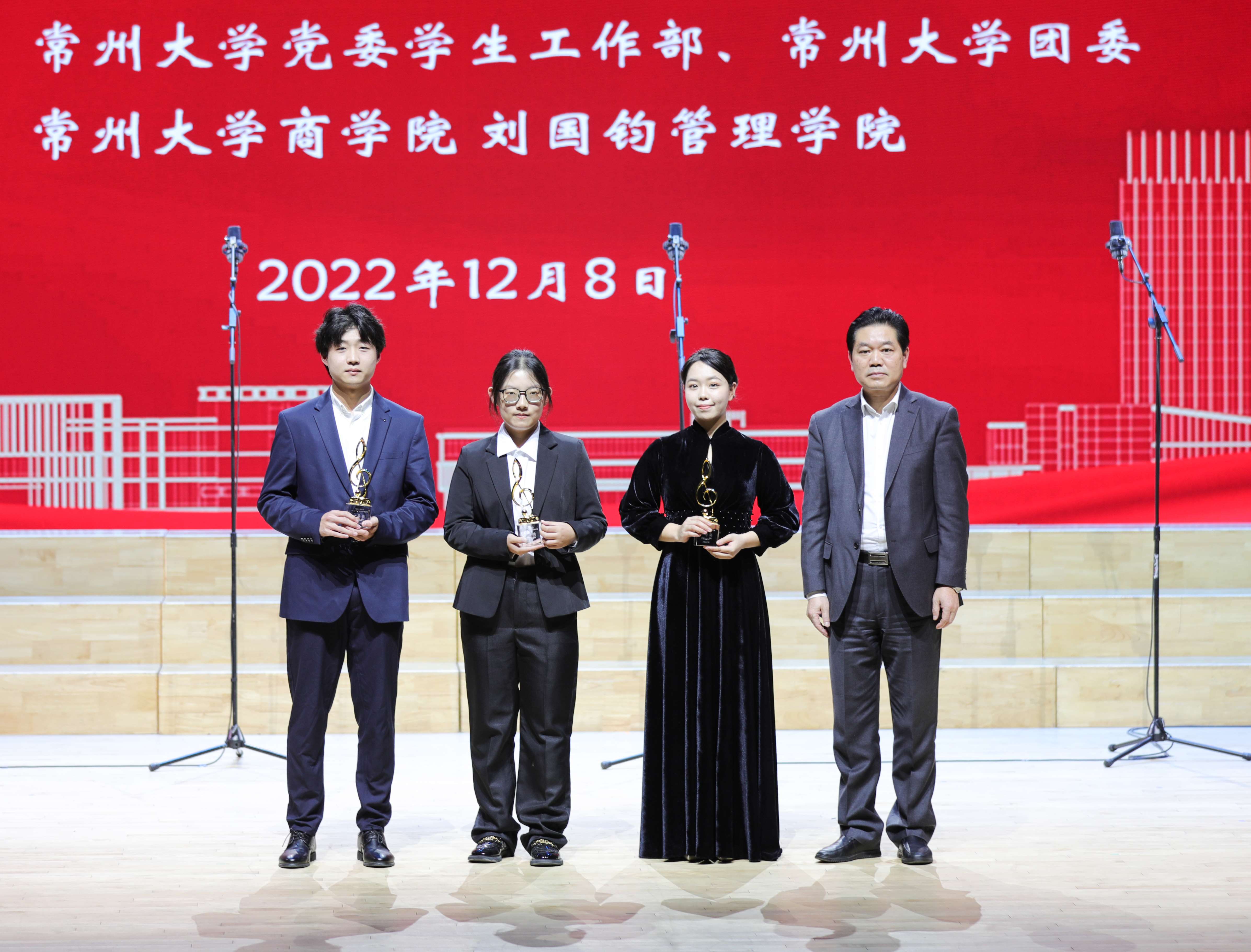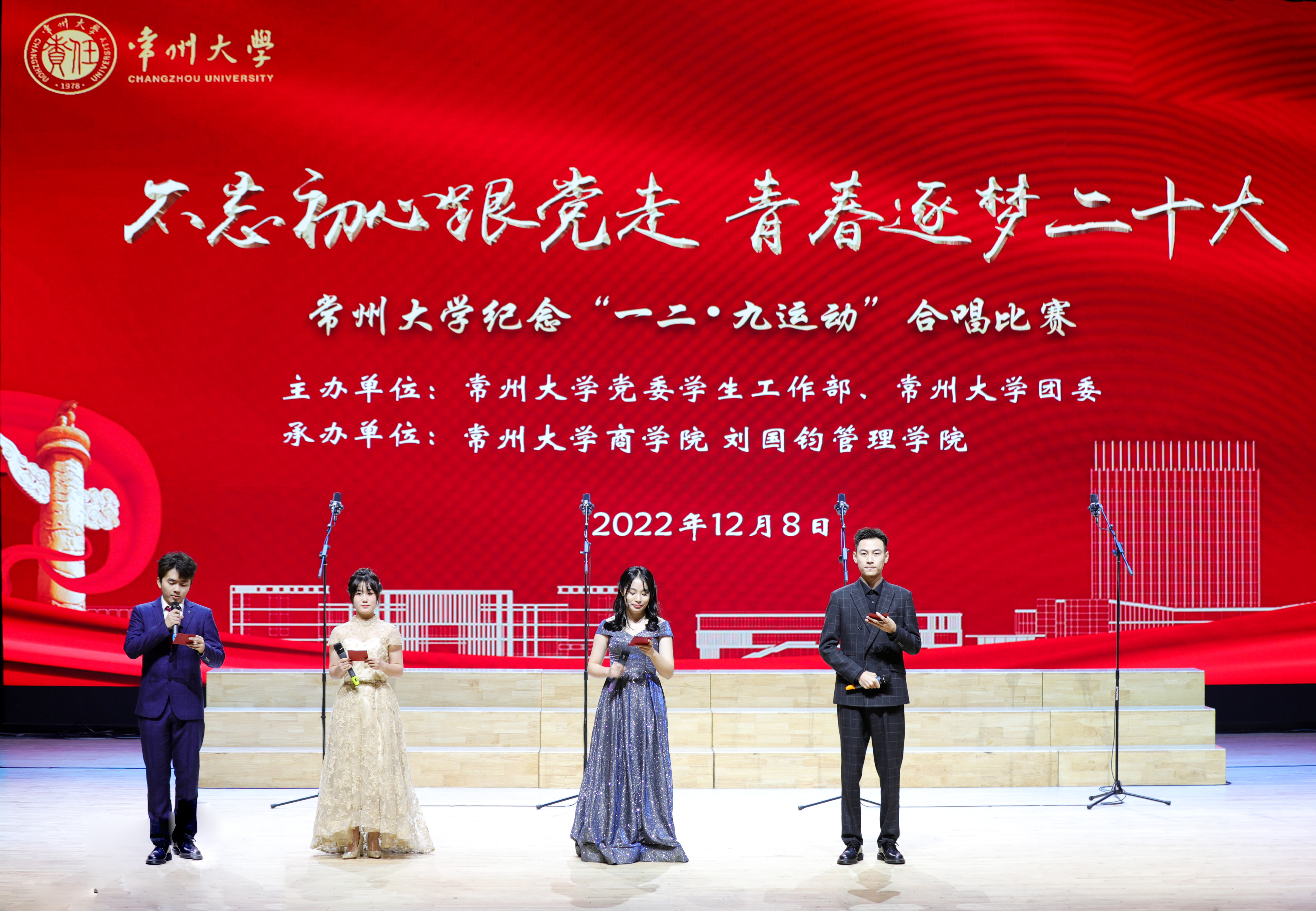 12月8日,由党委学生工作部、团委主办,商学院 刘国钧管理学院承办的常州大学合唱比赛决赛在西太湖校区立艺楼礼堂举办。党委副书记、副校长戴国洪,党委常委、宣传部部长杨琳出席活动,学生工作处、团委负责人及部分参赛学院负责人、学生代表参加决赛。