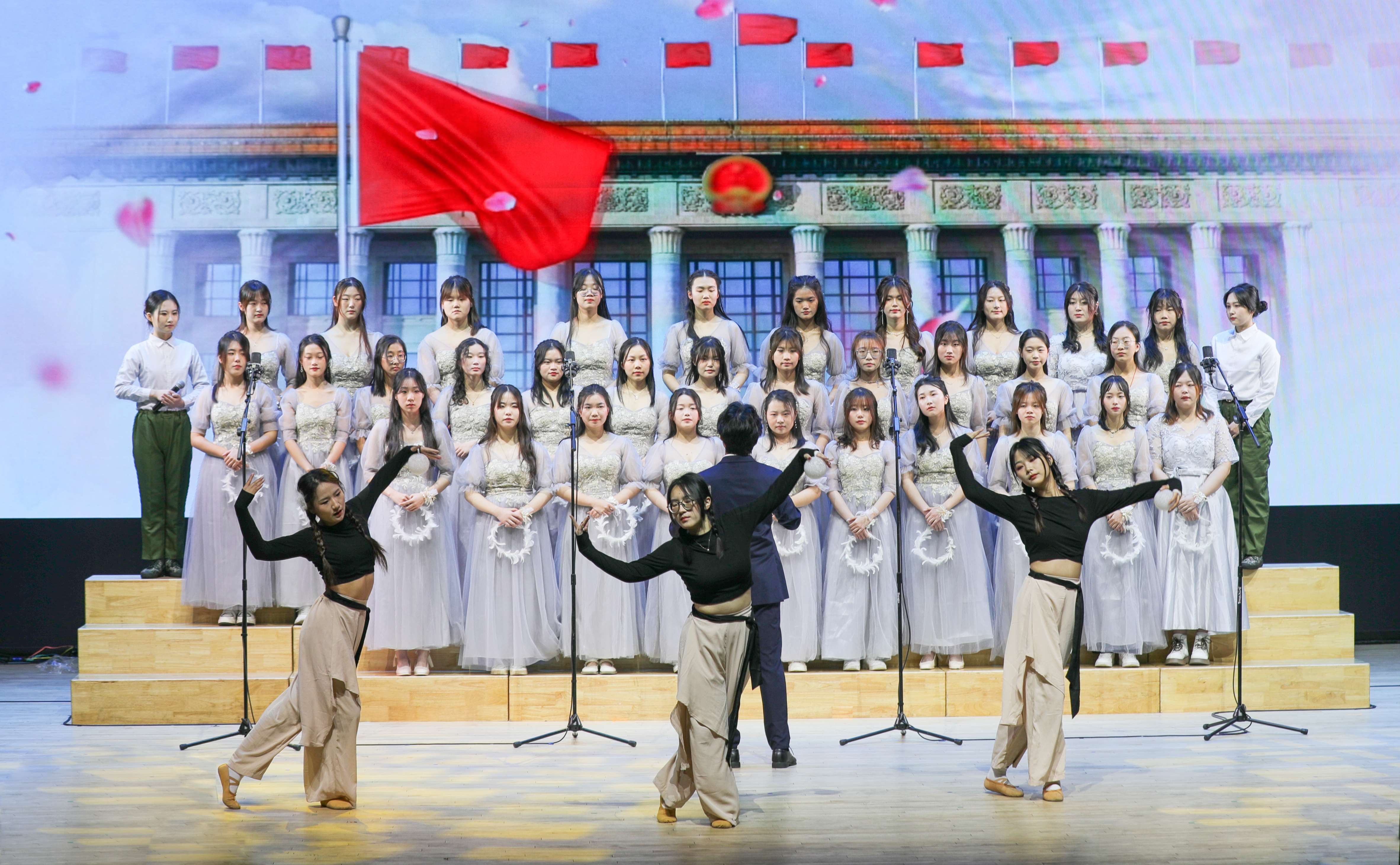 本次合唱比赛自11月启动以来,得到了各学院的大力支持,21支队伍的1050余名学生参加。经过激烈角逐,10支代表队脱颖而出进入决赛。比赛分为“回忆往昔·致敬民族脊梁”“千秋伟业·共筑百年大计”“戮力同心·书写青春担当”三个篇章,同学们唱响青年使命,展现青年一代在强国路上的自信担当,表达了新时代青年感党恩、跟党走,勇担民族复兴大任的赤子情怀。