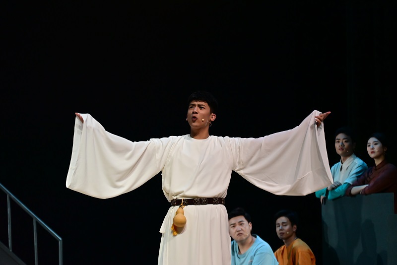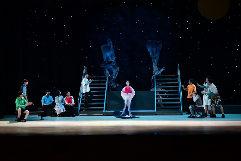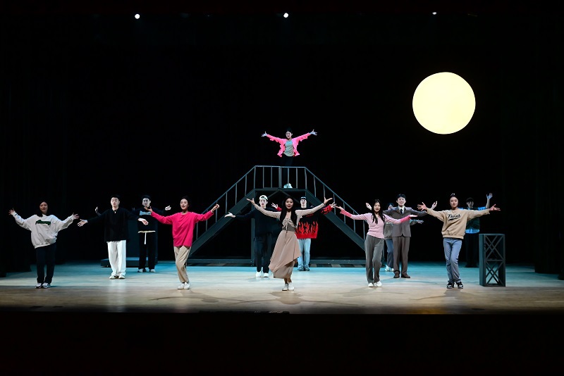 本剧从表演系学生的视角出发,以戏剧排练为剧情主线,通过戏中戏的方式,呈现出当代大学生丰富多彩的校园生活,表达了新时代青年对历史的追忆和对国家的热忱。剧中学生扮演的瞿秋白、刘半农等人物形象,激励着当代青年铭记历史、砥砺前行;运河母亲则展现了常州地域文化,寄托着对乡土的眷恋和对祖国的深情;而李白、嫦娥、云、鸟等角色则是浪漫主义的化身,以富有诗意的台词引发观众的无限遐想,为全剧增添一抹亮丽的色彩。舞台上,表演191班全体学生展现出成熟的表演技巧与昂扬向上的青春活力,精彩的演出获得在场观众一致好评。