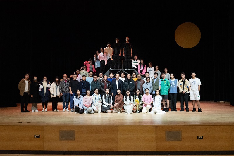 近日,由国家一级演员、音乐与影视学院表演专业负责人蔡伟教授总监制,表演系主任童劲杰执导,著名诗人欧震编剧,2019级表演专业毕业生主演的原创诗话剧《月亮与烟火》在西太湖校区立艺楼大礼堂上演。江苏省演艺集团歌舞剧院书记、国家一级导演庄嘉敏,国家一级编剧杨劲松,南京大学博士生导师康尔教授,常州大学党委书记陈群、关工委常务副主任王凯全,创新创业教育办公室、关工委相关负责人及西太湖校区师生代表共同观看演出。