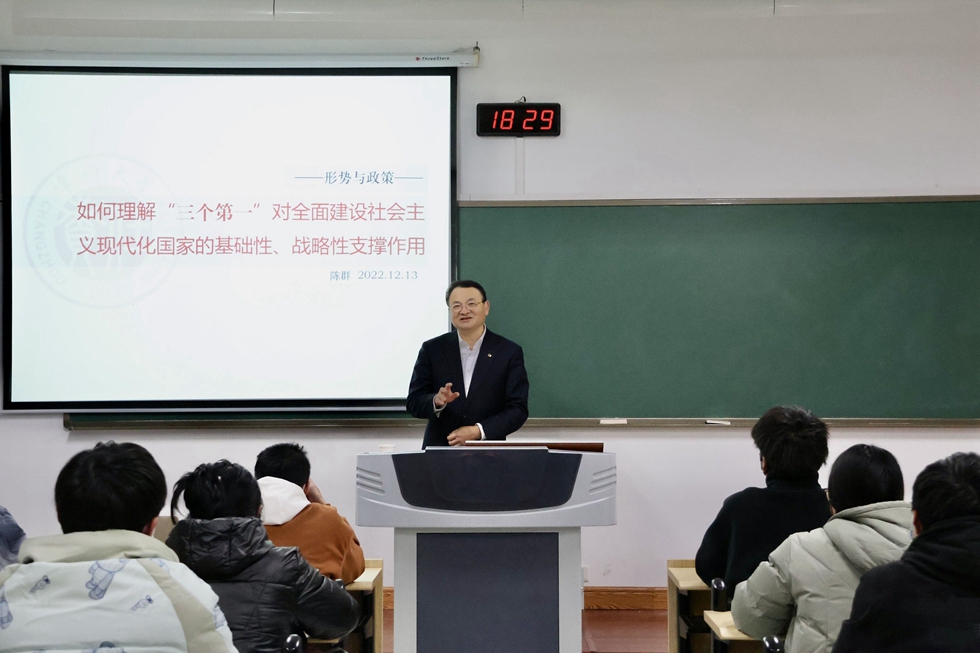 为深入学习贯彻党的二十大精神,引导学生深刻理解国家实施科教兴国战略、人才强国战略、创新驱动发展战略的重要意义。近日,党委书记陈群在西太湖校区立德楼X103教室为吴敬琏经济学院2021级金融学、金融工程专业学生讲授题为“如何理解‘三个第一’对全面建设社会主义现代化国家的基础性、战略性支撑作用”的形势与政策课程。