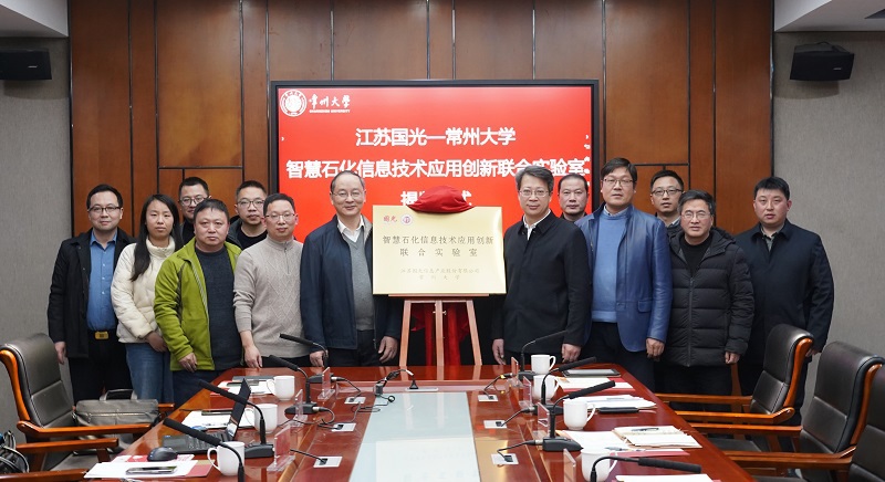 信息技术领域的自主可控,是保障国家信息安全的基础。为适应石油石化行业在数字化、智能化转型发展过程中对信创技术和人才的需求,江苏国光信息产业股份有限公司(以下简称“江苏国光”)和常州大学经过深入探讨和前期论证,联合成立“智慧石化信息技术应用创新联合实验室”,2月17日下午,学校在科教城校区第二会议室举行“智慧石化信息技术应用创新联合实验室”揭牌仪式。江苏国光董事长李继奎、信创事业部总经理卜可育、信创事业部副总经理谈晶、信创事业部系统开发部副部长谷树新,常州大学党委副书记、校长徐守坤,教务处、信息建设与管理处、计算机与人工智能学院 阿里云大数据学院 软件学院、机器人产业学院 中以科创学院、创新创业学院相关负责人及合作企业代表参加揭牌仪式。