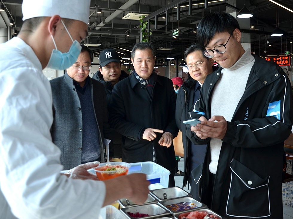 近日,党委常委、副校长徐树法,党委常委、纪委书记、派驻监察专员沈新奎深入科教城校区学生食堂调研指导供餐保障工作,并与学生共进午餐,后勤服务中心主任葛和生及相关负责人陪同调研。