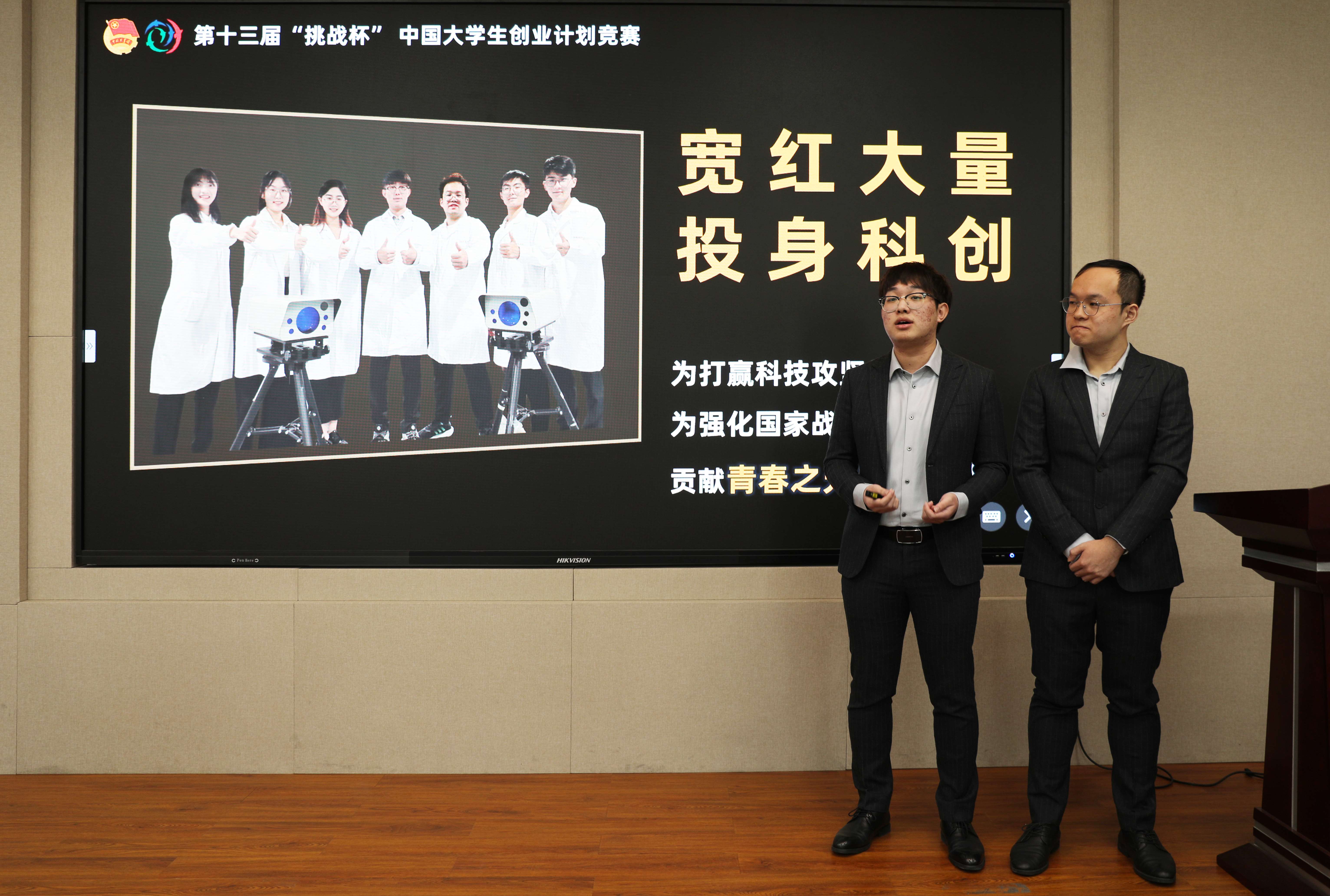 3月14日下午,第十三届“挑战杯”全国大学生创业计划竞赛国赛终审决赛项目答辩汇报会在科教城校区文彰楼302会议室举行。党委书记陈群,党委常委、副校长黄海燕出席会议,团委、相关学院负责人,以及参赛项目团队师生代表参加汇报。