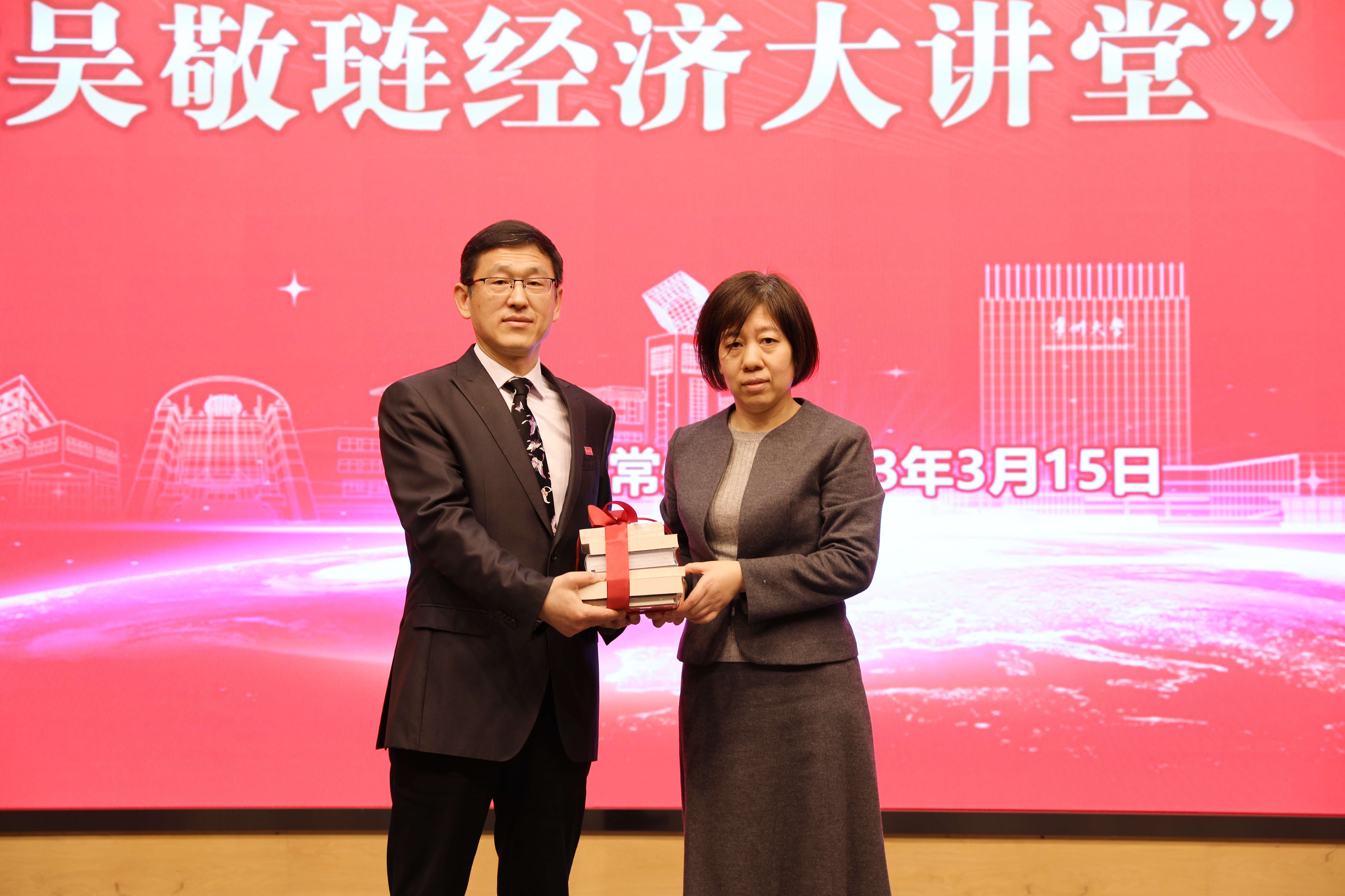 吴素萍代表吴敬琏教授向学院捐赠图书