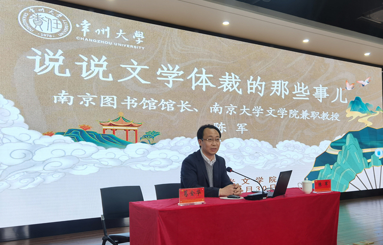 近日,南京图书馆馆长、南京大学文学院兼职教授、博士生导师陈军教授应我校周有光文学院“苔岑雅集·周有光文化大讲堂”第十九期邀请,为周有光文学院师生作题为“说说文学体裁的那些事儿”“浅谈人文社会科学研究的‘道’与‘技’”两场学术讲座。党委常委、纪委书记、派驻监察专员沈新奎出席讲座,并代表学校向陈军颁发客座教授聘书。周有光文学院相关负责人及各教研室中青年教师,校内外学者、师生200余人聆听了讲座。