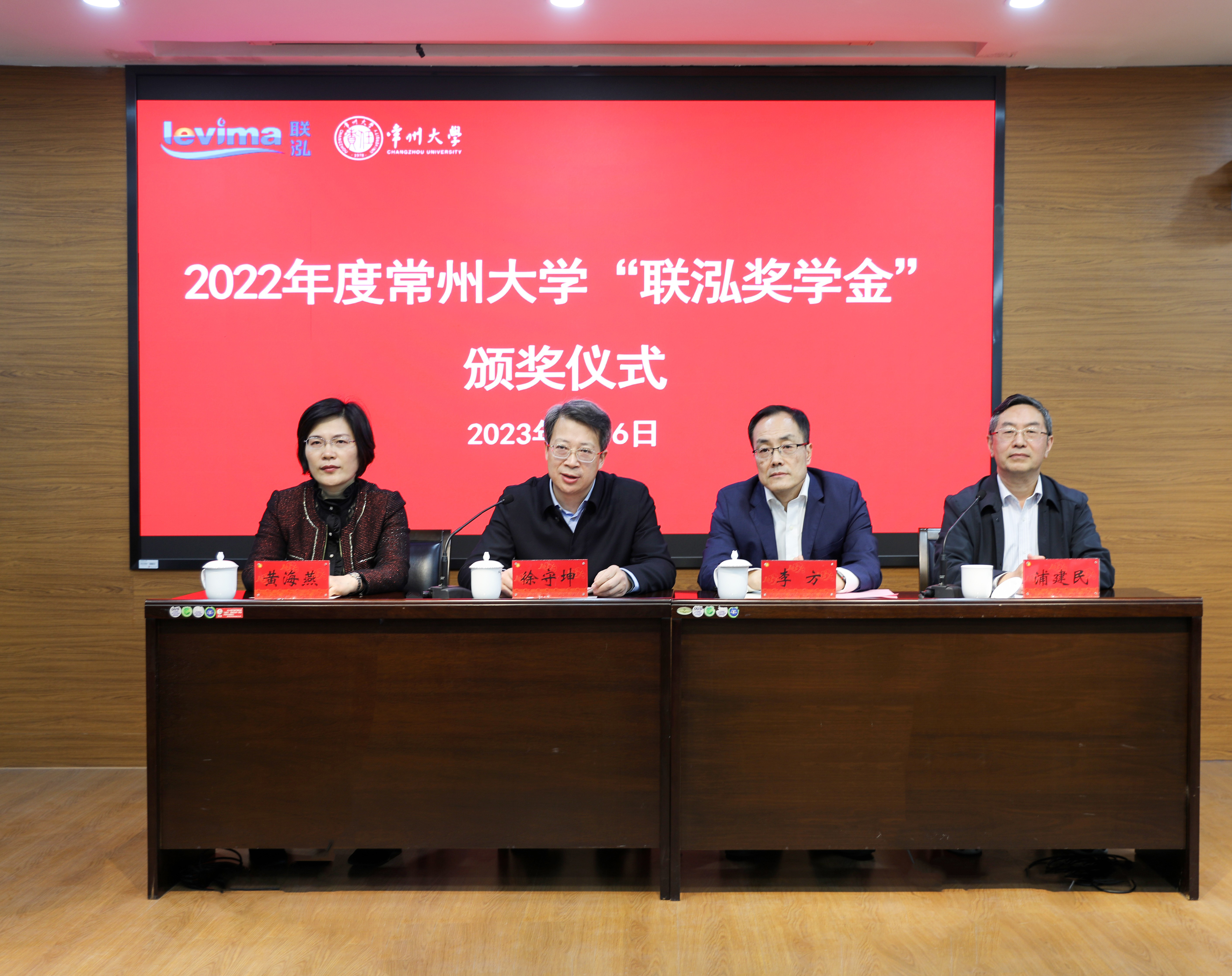 4月6日下午,学校在科教城校区文正楼第四会议室举行2022年度常州大学“联泓奖学金”颁奖仪式。联泓新材料科技股份有限公司(以下简称“联泓新材料”)高级副总裁兼CTO李方,我校党委副书记、校长、教育发展基金会副理事长徐守坤,党委常委、副校长黄海燕出席活动,联泓新材料常州人力行政部,校发规处、校友办、研究生院、学工处、相关学院负责人以及在校获奖学生代表参加活动。校教育发展基金会秘书长浦建民主持颁奖仪式。