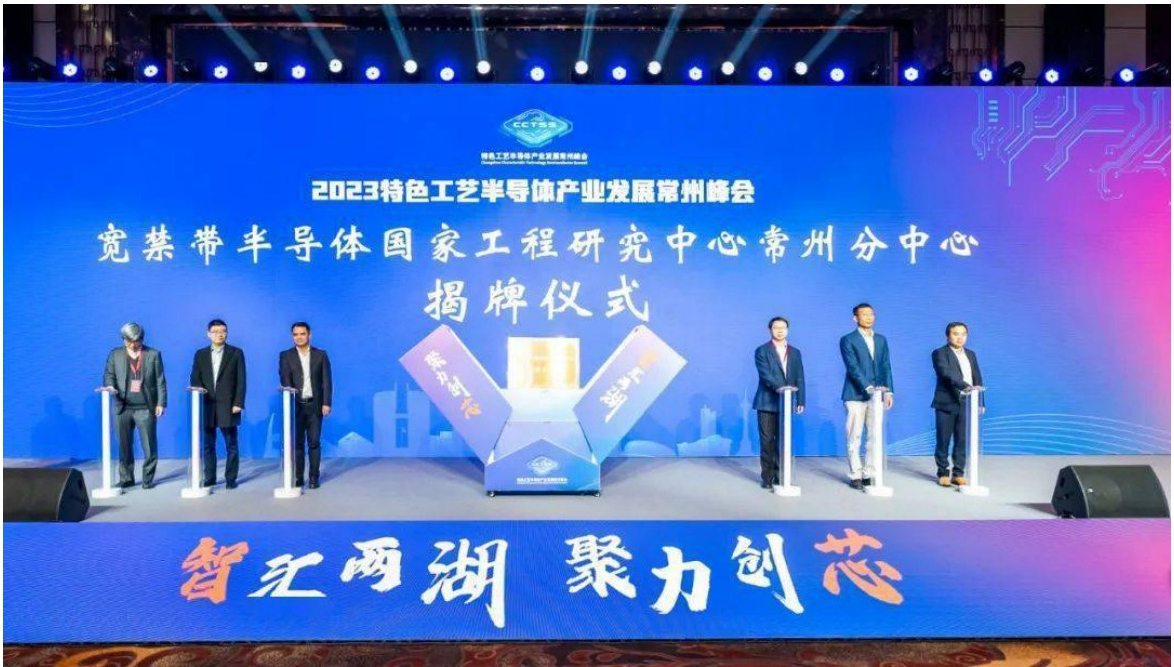 智汇两湖,聚力创芯,4月8日,2023特色工艺半导体产业发展常州峰会在武进举行。宽禁带半导体国家工程研究中心常州分中心揭牌。武进区委常委、副区长李德森,西安电子科技大学宽禁带半导体国家工程研究中心主任马晓华,常州大学副校长王建浦,武岳峰资本创始合伙人潘建岳,常州承芯半导体有限公司总经理余楚荣,常州纵慧芯光半导体科技有限公司董事长赵励出席活动。