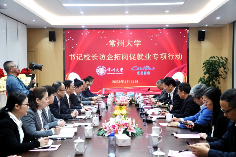 陈海群介绍了学校的人才培养、科学研究、办学成果等情况。他表示,学校始终坚持立足地方,持续服务地方和行业发展,希望校企双方能够以常州“两湖”创新区建设为契机,在人才培养、科技攻关、项目合作等方面加强对接,寻找更多的融合点和创新点,进一步开拓校企合作的广度和深度,实现资源共享、优势互补,最终达到产学研用深度融合、协同发展的共赢目标。