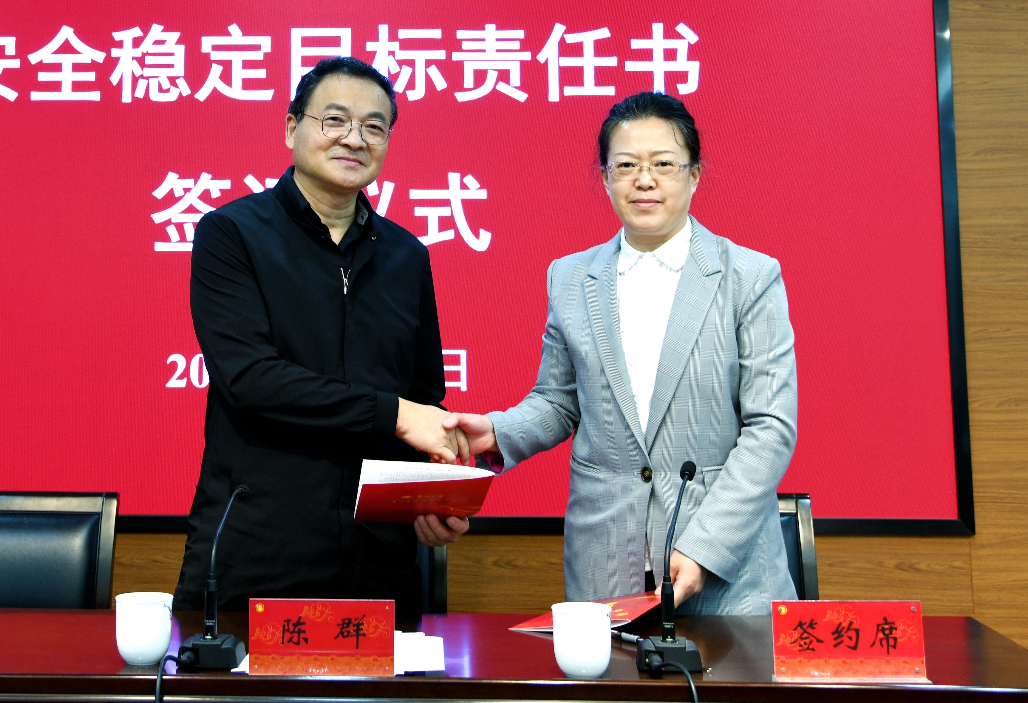 陈群与后勤管理处主要负责人签订安全稳定目标责任书