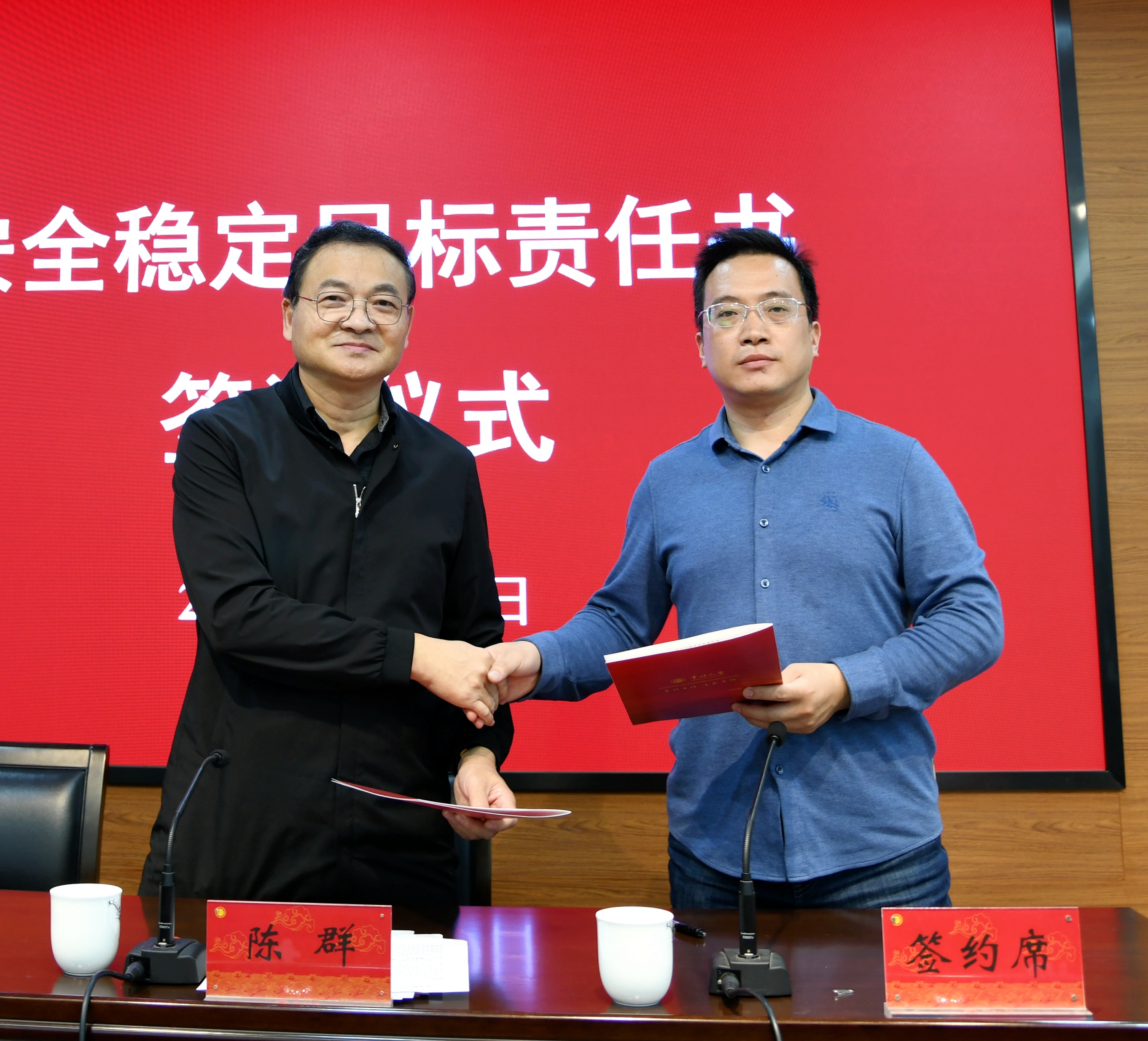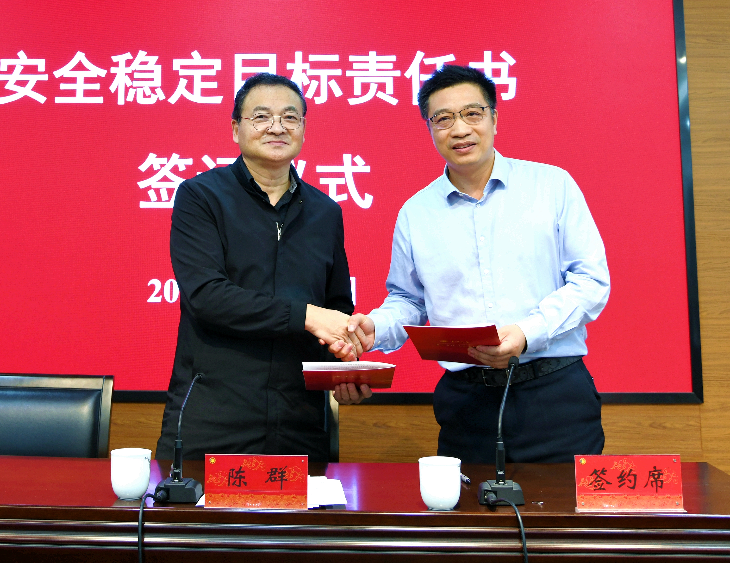陈群与商学院 刘国钧管理学院主要负责人签订安全稳定目标责任书