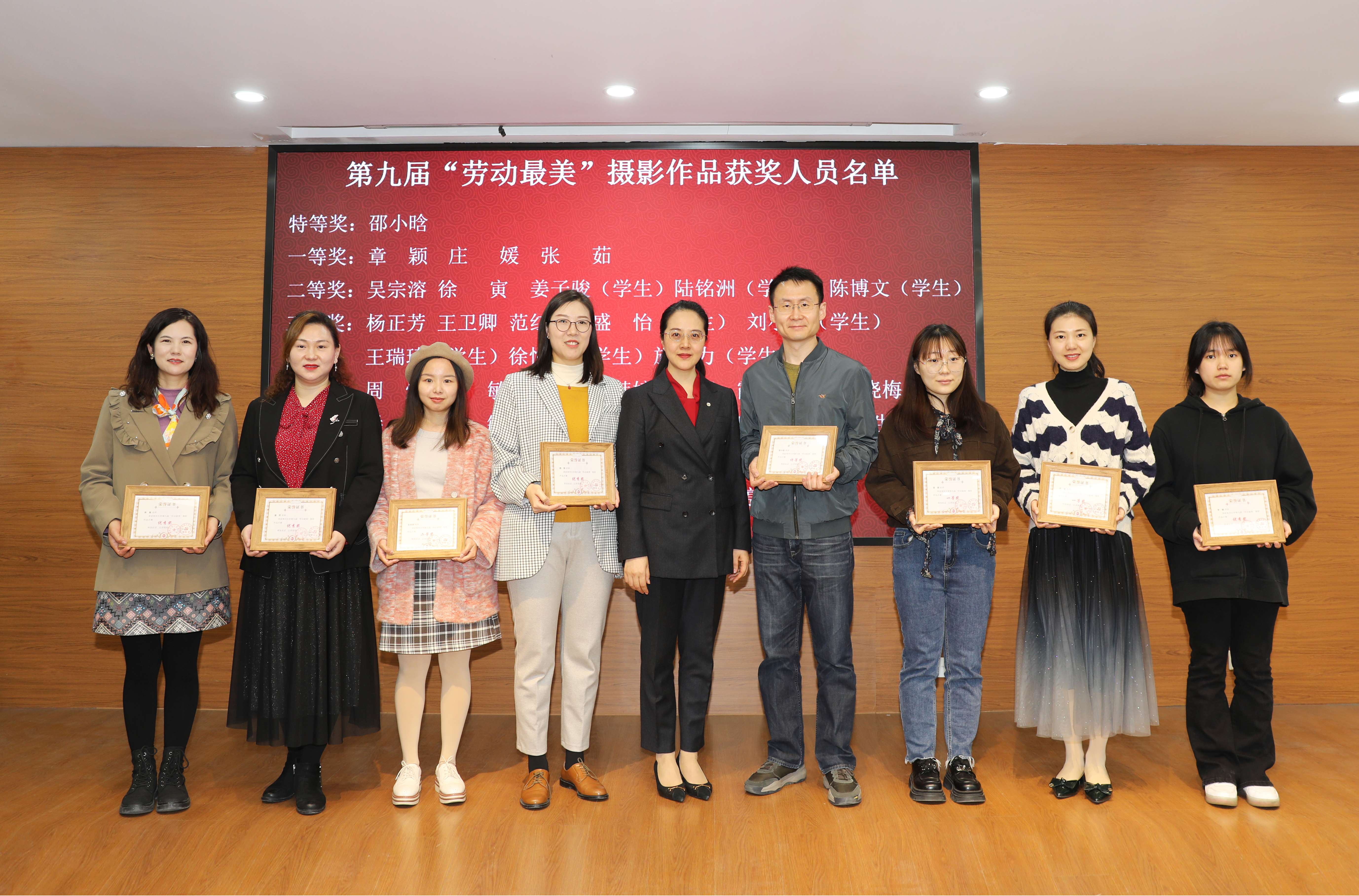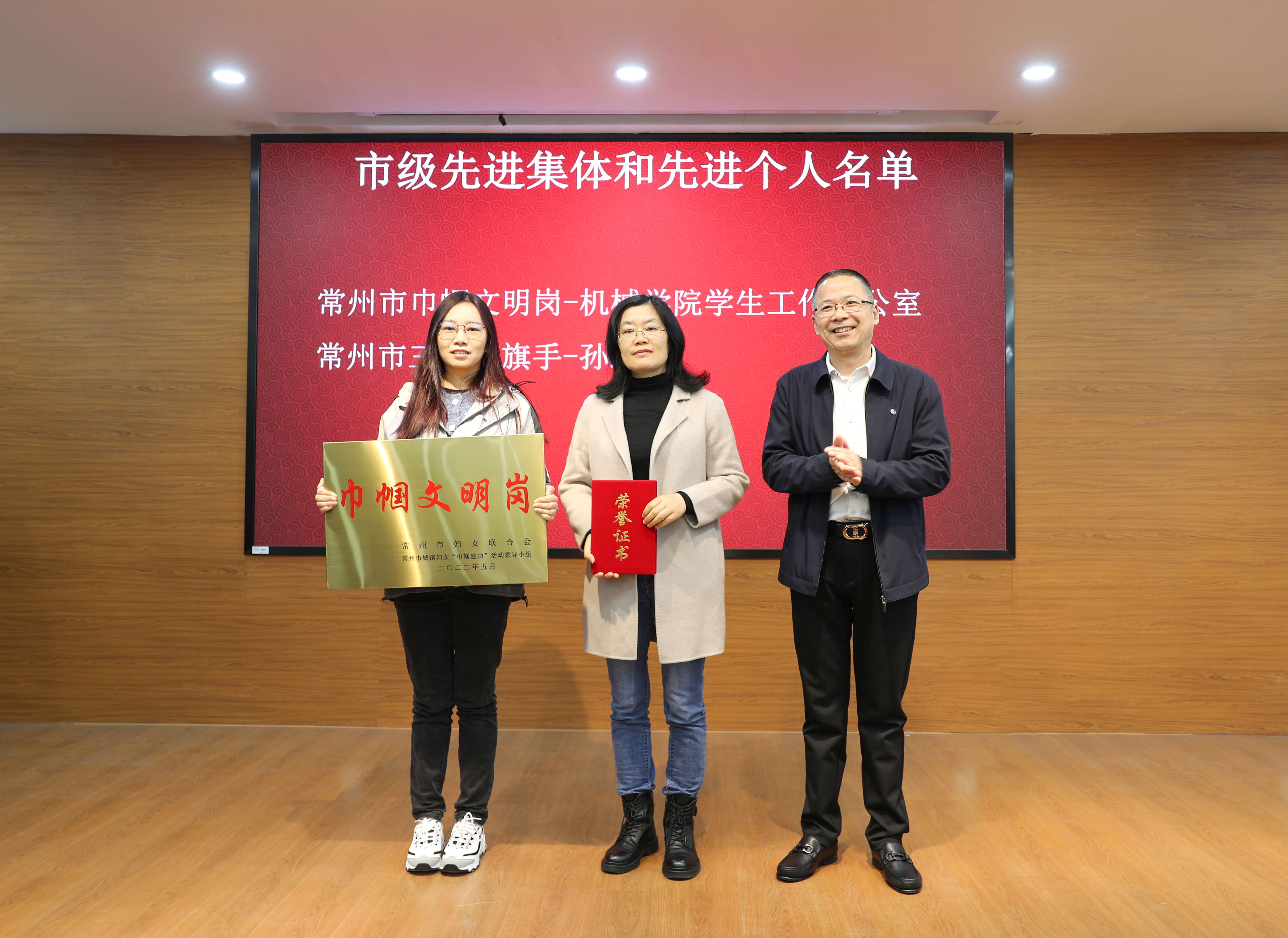 会议对常州市巾帼文明岗——机械学院学生工作办公室、常州市三八红旗手——石工学院教授孙运兰,常州大学工人先锋号、五一劳动奖章和常州大学五一巾帼标兵、五一巾帼标兵岗获得者,2022年分工会工作考核先进集体和先进个人,以及第九届“劳动最美”摄影作品比赛获奖人员进行了表彰。杨琳宣读表彰文件。陆锦冲、杨琳分别为获奖代表颁奖。