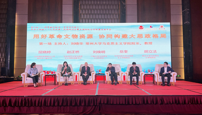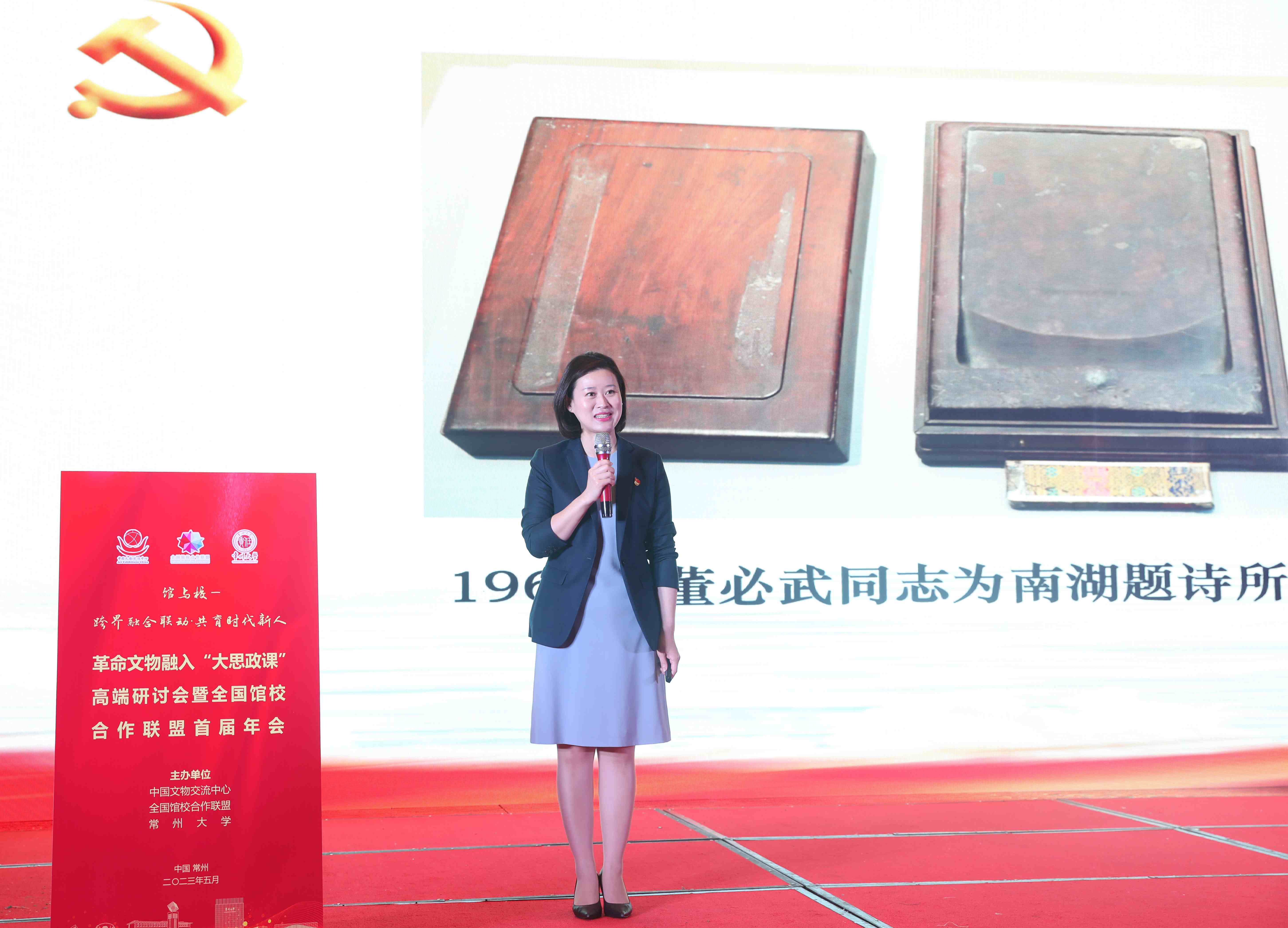 5月6日,由国家文物局中国文物交流中心、全国馆校合作联盟、常州大学联合主办的“馆与校——跨界融合联动 共育时代新人 革命文物融入‘大思政课’高端研讨会暨全国馆校合作联盟首届年会”在常州举行。国家文物局革命文物司司长岳志勇、中国文物交流中心主任谭平、中共江苏省委教育工作委员会副书记徐子敏向大会发来贺信或视频祝贺。国家文物局革命文物司展示传承处处长吴寒,中国文物交流中心文物旅游处处长孙鹏,江苏省文旅厅二级巡视员姚文中,陕西省文物局副局长马宝收,南京出版传媒集团党委书记、董事长、总编辑项晓宁,中国交通台长三角频率总编辑徐成忠,常州大学党委常委、副校长黄海燕,党委常委、宣传部部长杨琳,组织部部长周刚等出席开幕式。全国馆校合作联盟部分高校马克思主义学院院长、革命博物馆纪念馆馆长,“云上微思政课—百家馆校革命文物周周讲”第1-20期讲解员和部分评论人,以及常州大学教师代表100余人参加活动。会议通过腾讯会议线上直播,全国200多座馆校300多人线上参会。