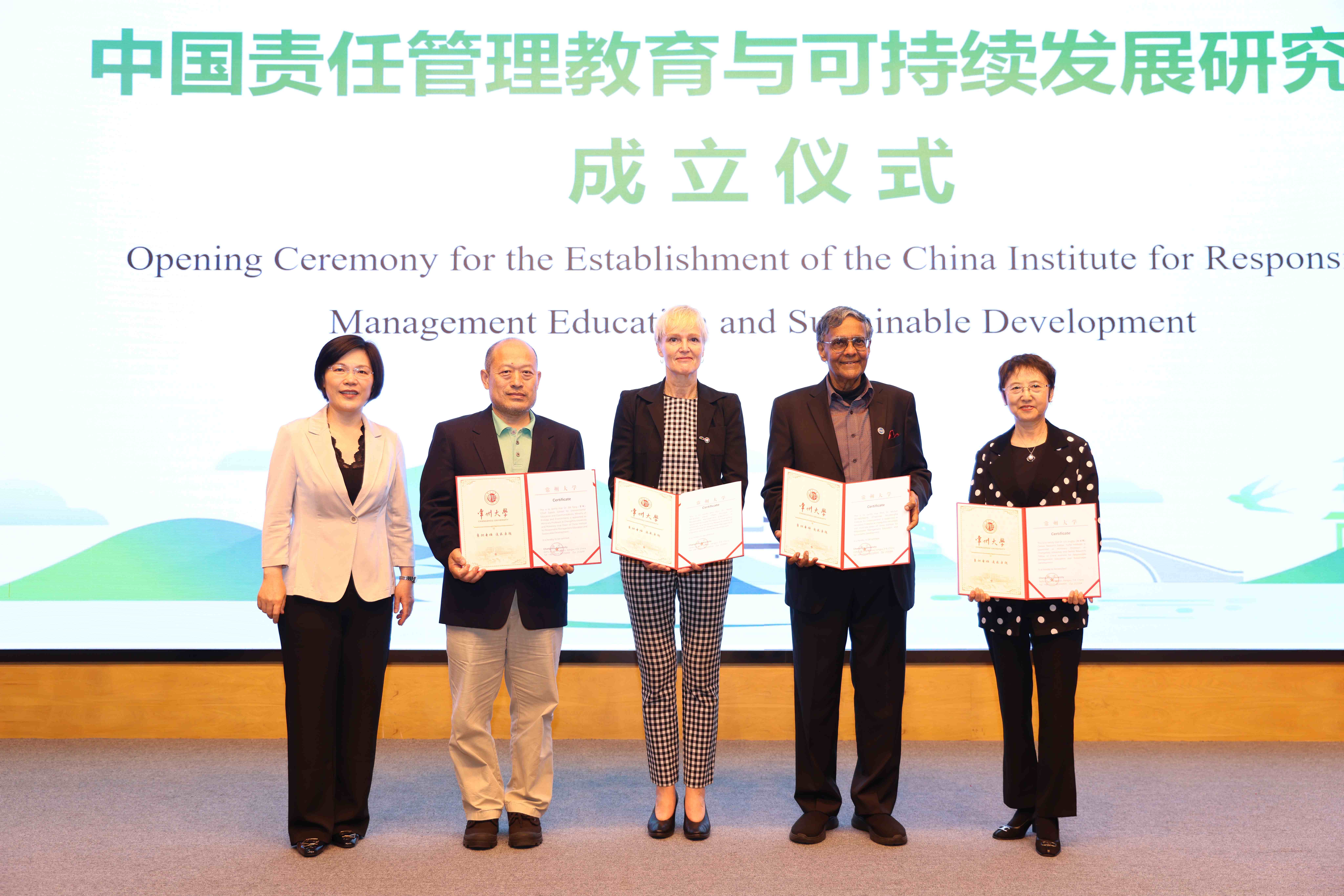 会议决定成立中国责任管理教育与可持续发展研究院,莫汉·穆纳辛格、梅特·摩尔辛、刘京辉、贾峰、黄海峰、黄海燕、陆华良等为研究院揭牌。