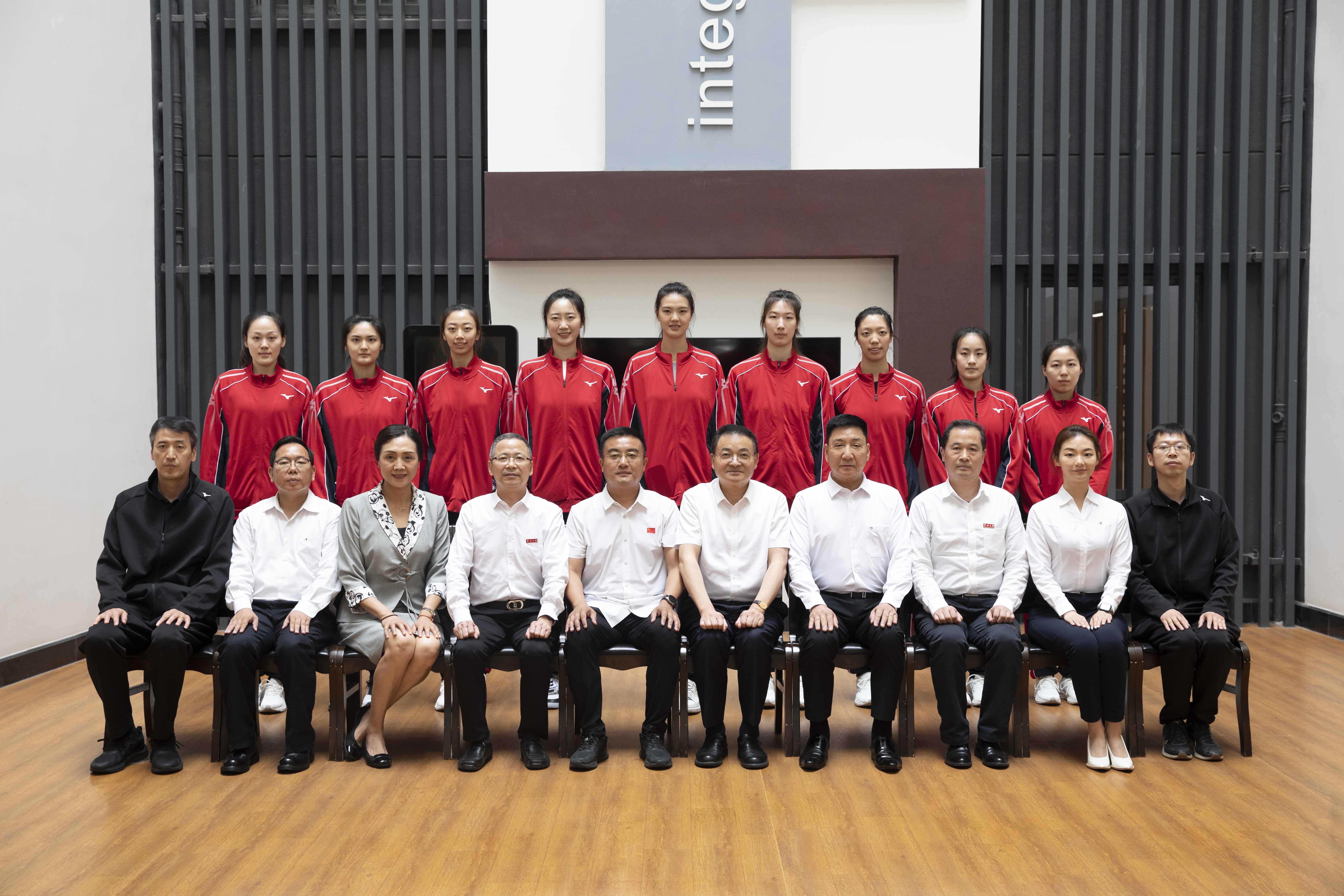 校领导会见江苏省体育局训练中心马兆森、毛武扬,江苏中天钢铁女子排球俱乐部高一平一行