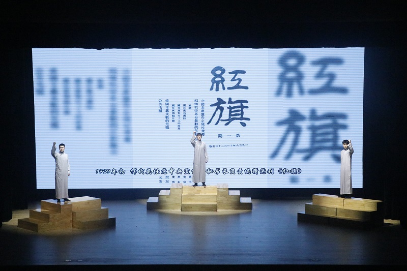 《觅渡》取材常州三杰革命事迹,采取理论学习与艺术元素相结合的方式,融合讲、演、唱、舞等表现形式,展现了以瞿秋白、张太雷、恽代英为代表的无产阶级革命家为谋人民之幸福舍生忘死的崇高理想,歌颂了共产党人对信仰的执着追求和百年不变的初心使命,为全体师生带来一场沉浸式的红色文化体验。
