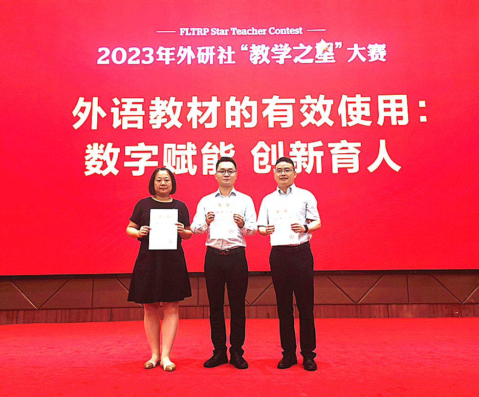 7月31日,2023外研社“教学之星”大赛全国半决赛(英语类专业组)在西安落幕,我校英语系冯健高、却俊、杨逸教师团队荣获特等奖,成功晋级全国总决赛。