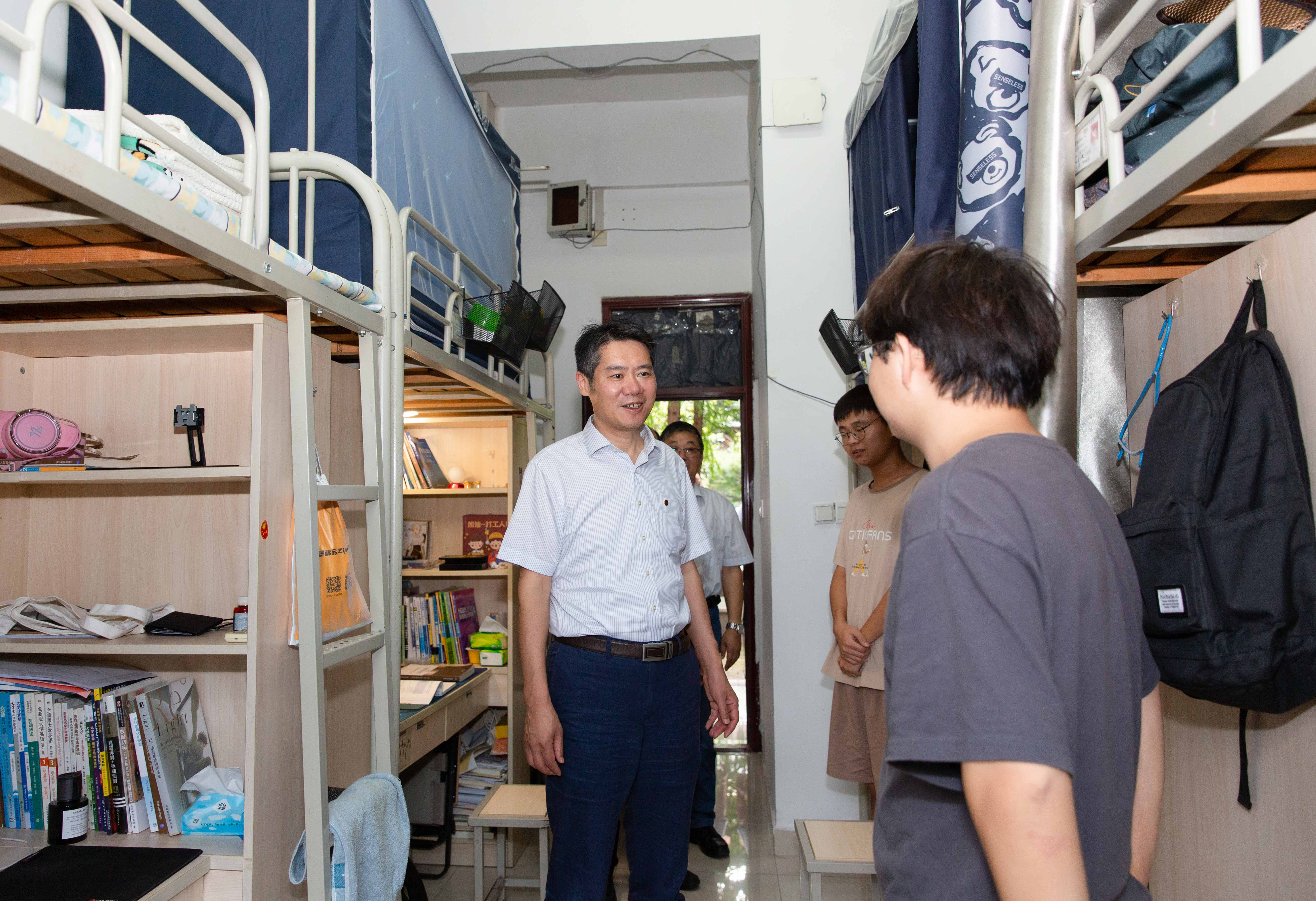 陈海群深入走访察看了学生返校报到接待点、产教融合综合实践中心、智慧警务室、骥江创客街区、学生宿舍等场所。每到一处,陈海群都与教职工亲切交谈,询问教职工的工作和生活情况,询问学生的学习情况,并勉励大家踔厉奋发、笃行不怠,以饱满的精神状态迎接新学期。