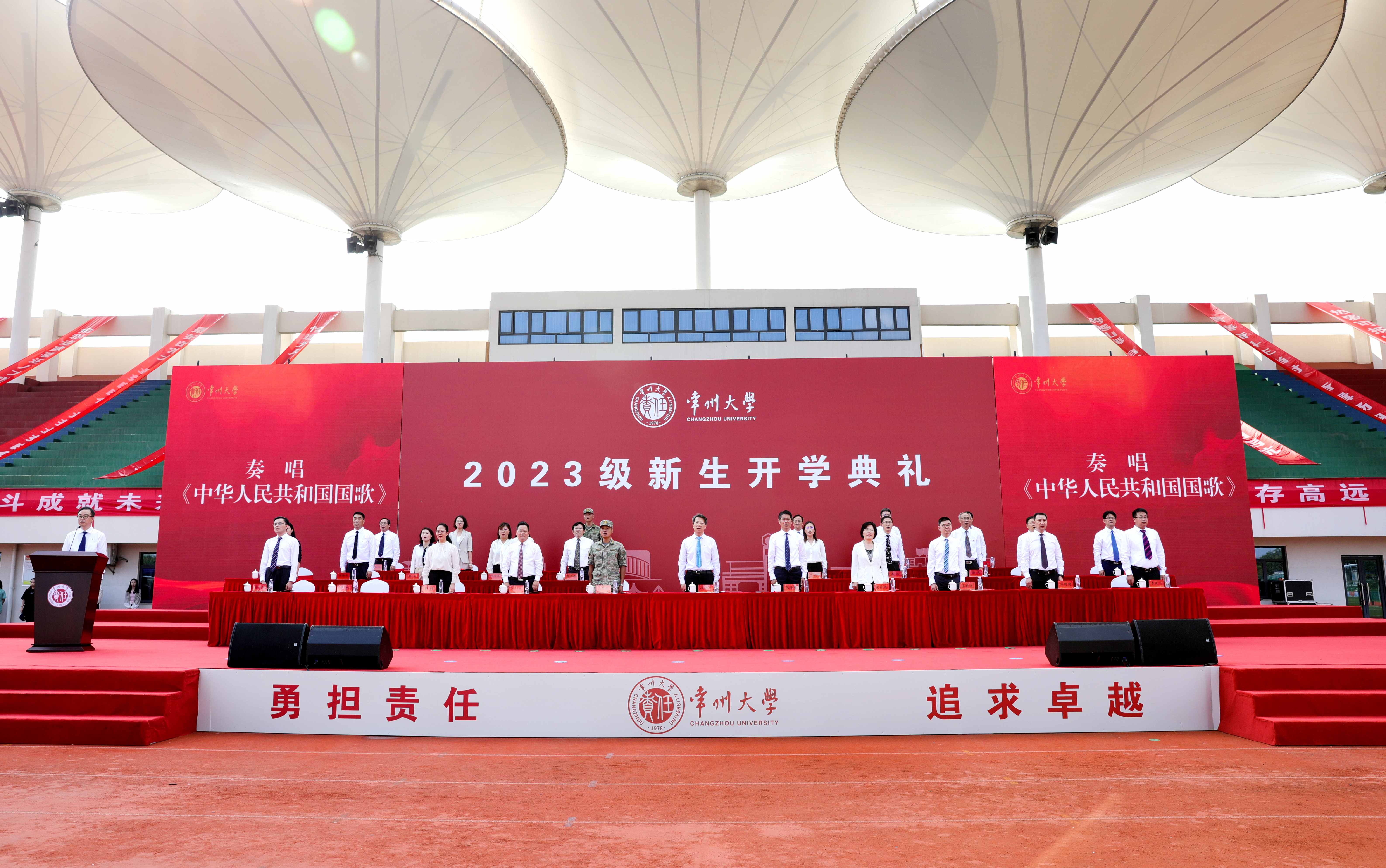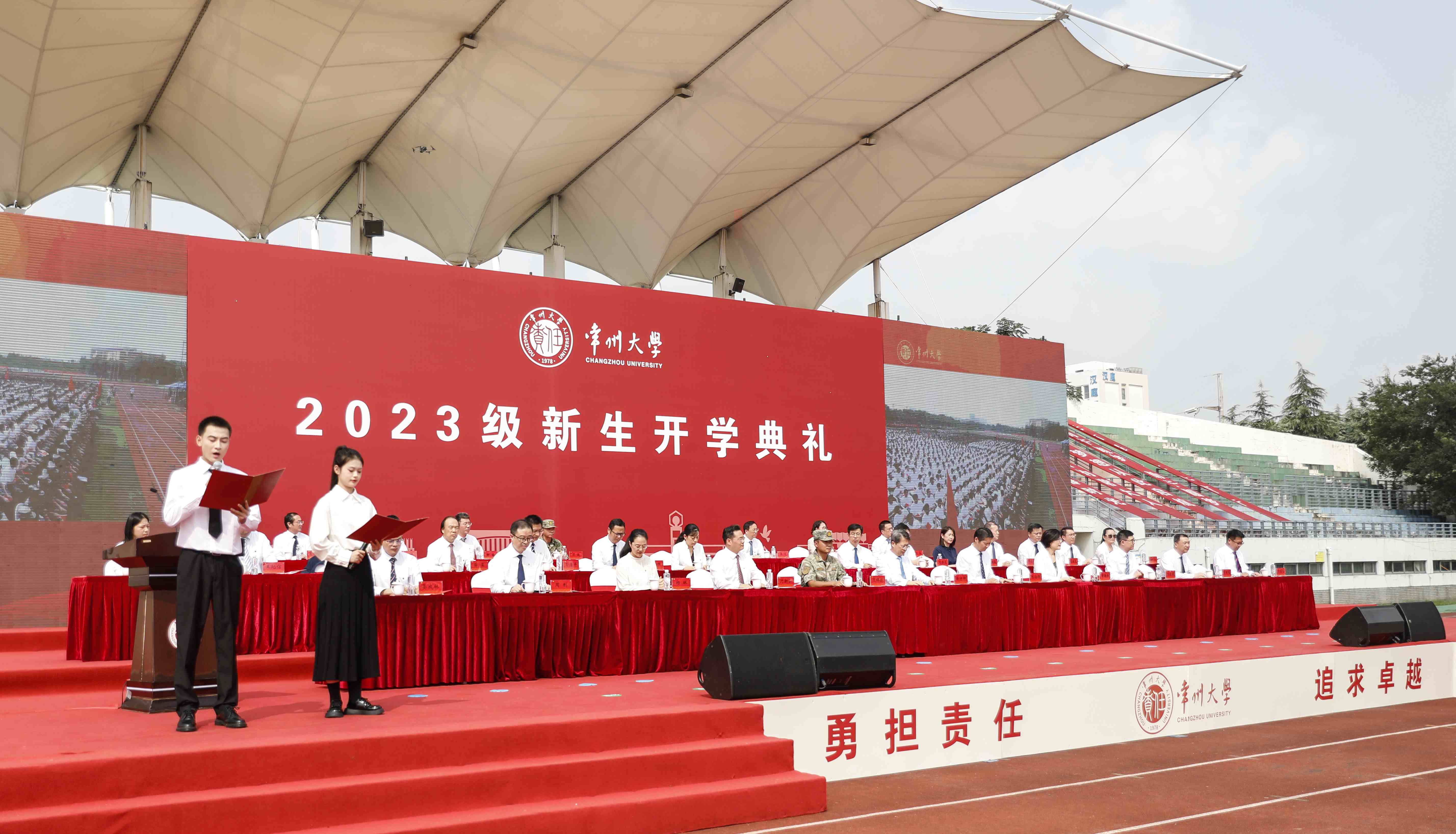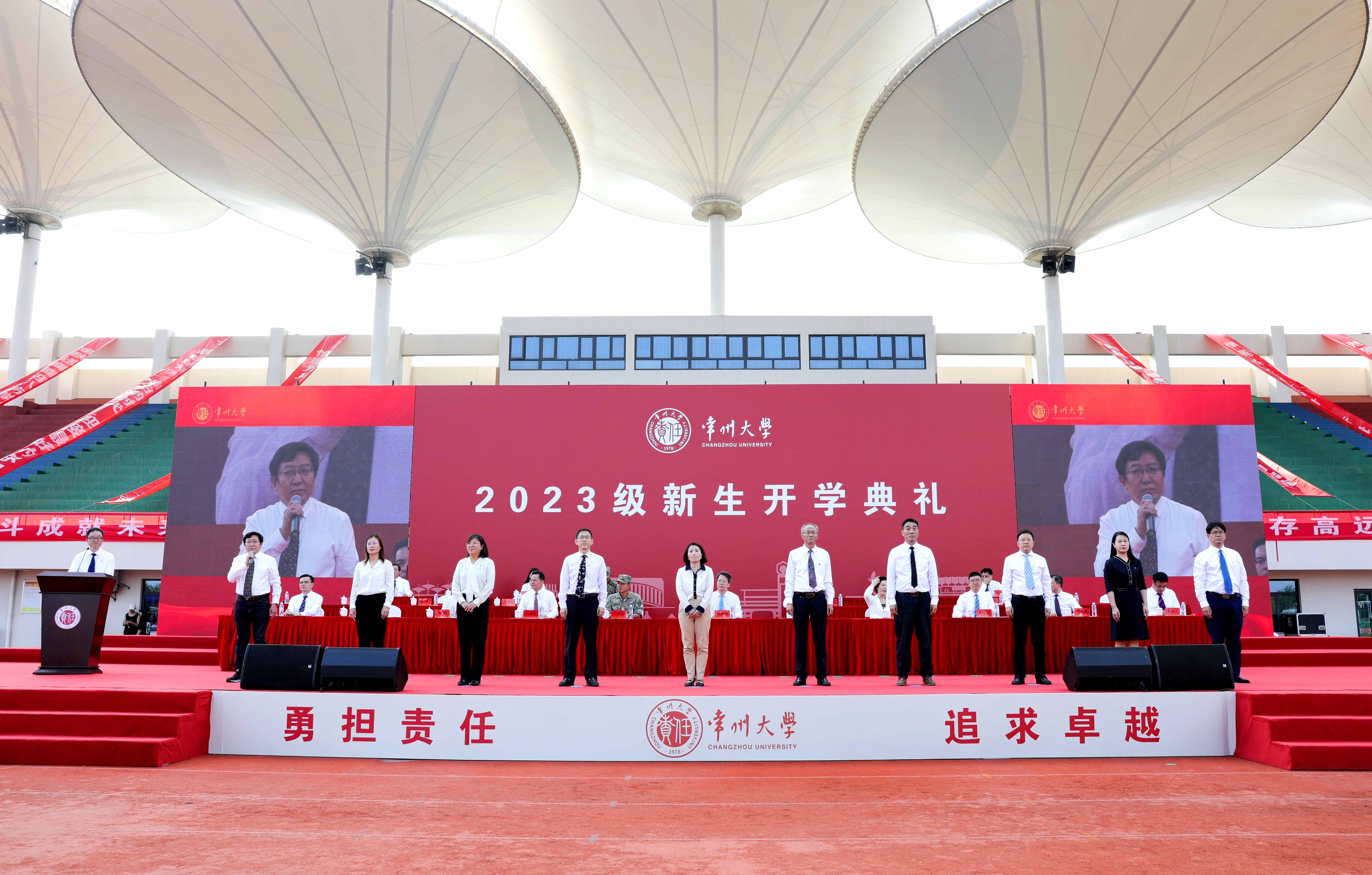 龙城九月,秋高气爽。9月17日,常州大学2023级新生开学典礼分别在科教城校区、西太湖校区举行。校领导和军训承训部队负责人出席开学典礼。相关职能部门和各学院负责人、军训教官、新生辅导员及全体2023级新生参加典礼。副校长周刚主持典礼。