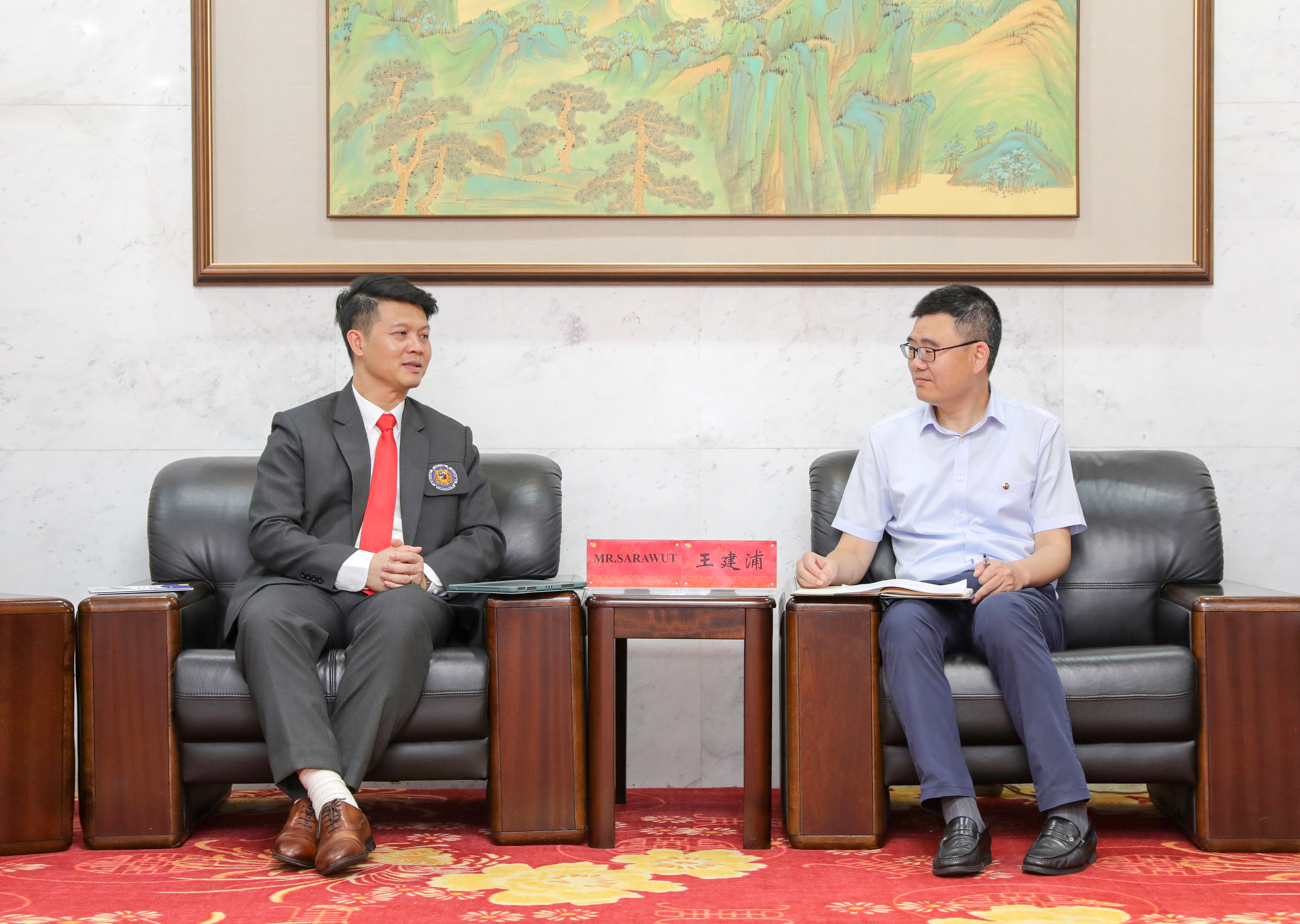 王建浦对萨拉吴·尤崇普的来访表示热烈欢迎,他回顾了两校的合作并介绍了近年来学校快速发展成果。他表示,目前常州正在推进“新能源之都”建设,工业制造实力强劲,常州大学人才培养体系健全,办学特色鲜明,欢迎蒙福学校的学生来常大学习深造。他希望两校深化合作,拓展学生交流从“短期”到“长期”再到“学位”教育的人才培养方式,助力“一带一路”建设,续写“中泰一家亲”的新篇章。