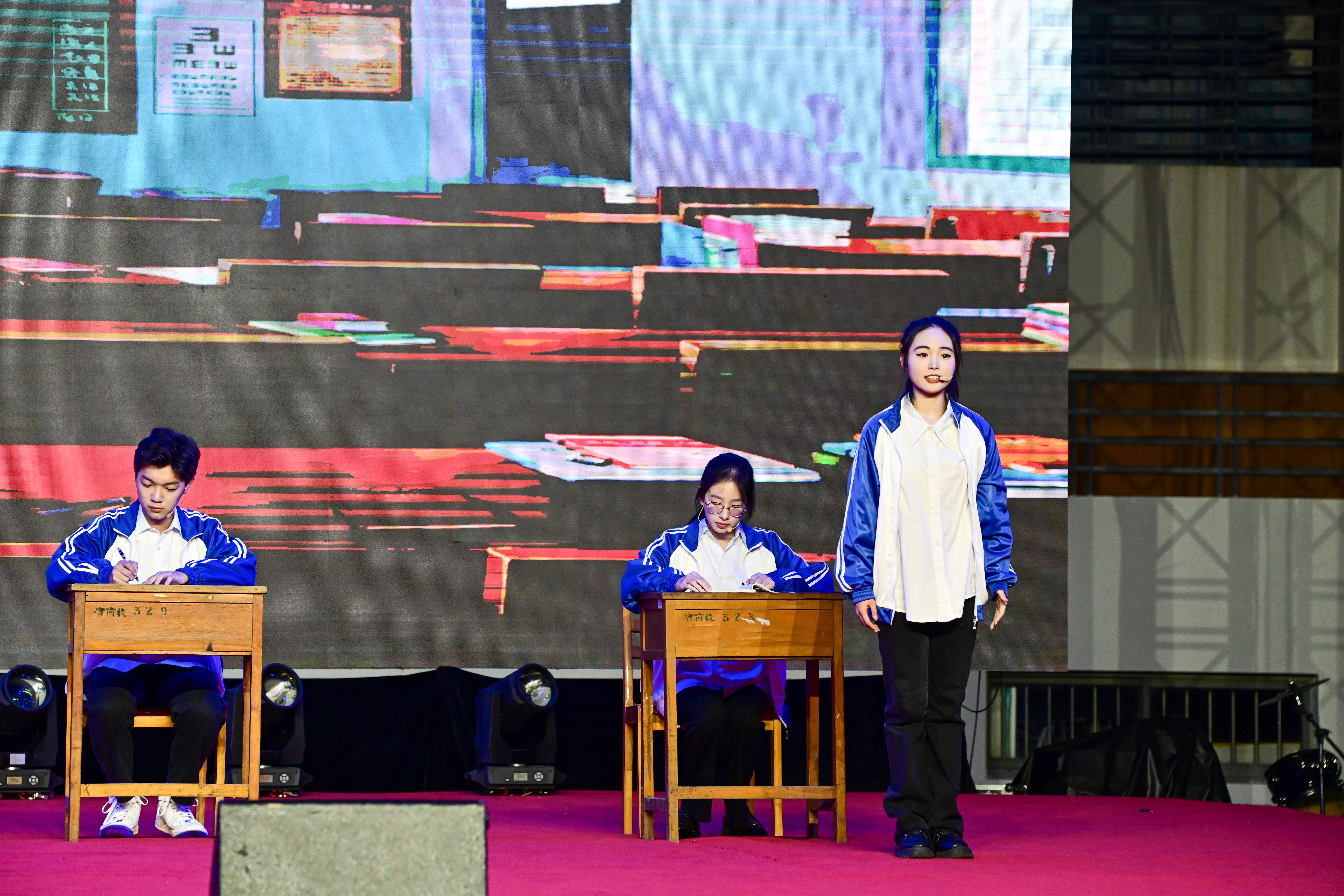 晚会以“追光·逐梦”为主题,通过歌曲、舞蹈、朗诵等形式,充分展现了常大学子朝气蓬勃、气宇轩昂的精神面貌。晚会在2023级新生辅导员汪露瑶和赫兹乐队演唱的组曲《万有引力》中拉开序幕;学校广播站、2023级新生代表带来情景朗诵《追梦》,清澈坚定的嗓音一如纯粹热烈的信仰,描绘出常大青年心中的理想与火光;大学生艺术团舞蹈团倾情演绎《天浴》,舞出了常大学子的花样年华;教职工代表、大学生艺术团合唱团、2023级新生代表联袂带来歌曲串烧《满新欢喜·遇见你》,让我们在跳跃的音符中感受年轻的跃动与张扬;留学生代表带来的海外留学生风采展,展示了常大多元一体、四海一家的校园文化;街舞联盟和2023级新生代表激情热舞《dazzling move》《bangarang》,动感的旋律和舞步交织,将晚会推向高潮;晚会现场举行了一场特别的欢迎仪式——退伍学生迎新仪式《致敬,最可爱的人》;2023级新生即将结束为期14天的军事技能训练,承训部队教官身体力行、言传身教,他们带来的节目《男儿当自强》响彻云霄,一招一式之间尽显青春钢铁意志;随后,大学生艺术团舞蹈团带来女子群舞《唐宫夜宴》,一群活泼灵动的“唐朝少女”仿佛从古画中走来,带来一场跨越千年的大唐盛宴;晚会在音乐与影视学院以及全体演员演绎的歌舞《高飞》中落下帷幕,带着美好祝愿,2023级新生们的青春正剧将在常州大学正式开场。晚会现场,黄海燕向承训部队赠送常大剪纸,周刚向退伍学生代表发放了入学礼盒。