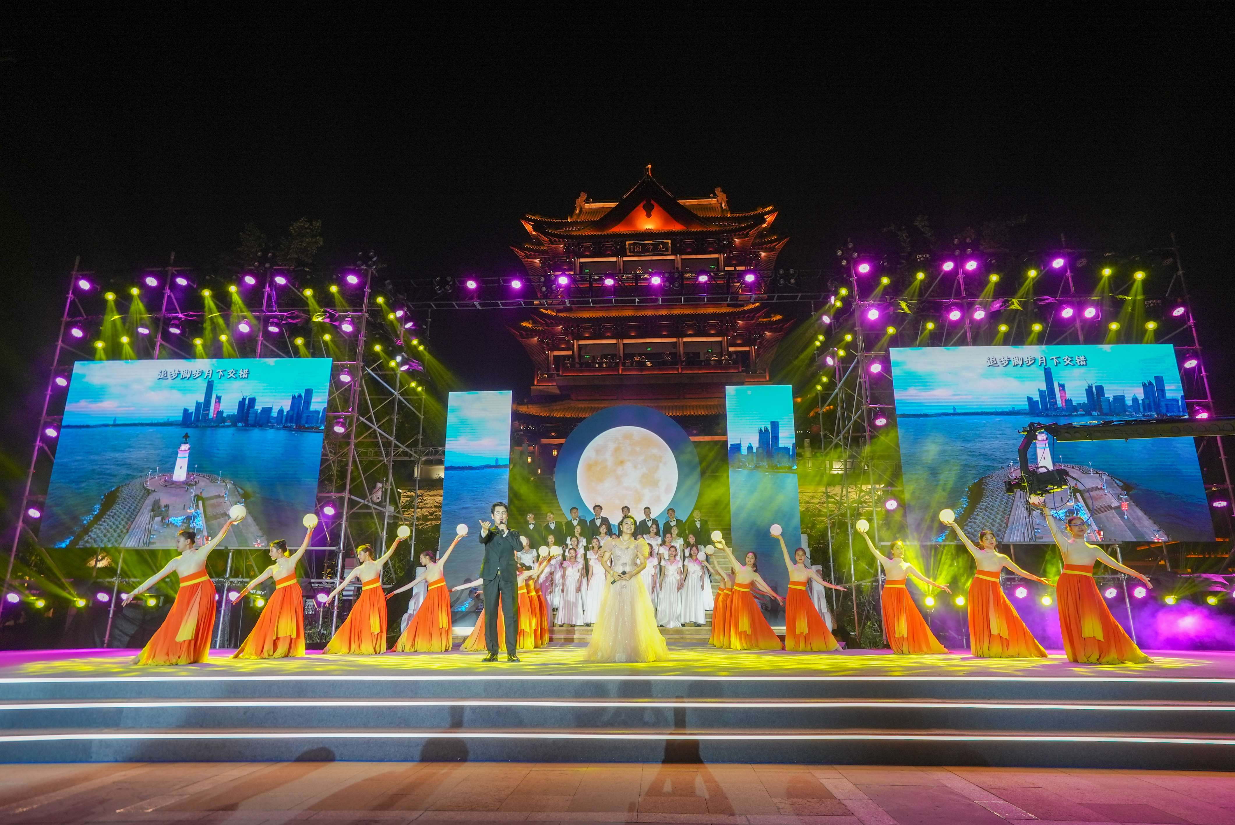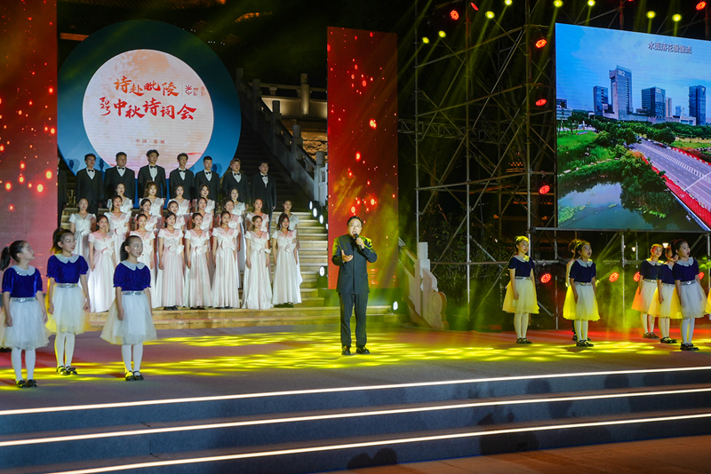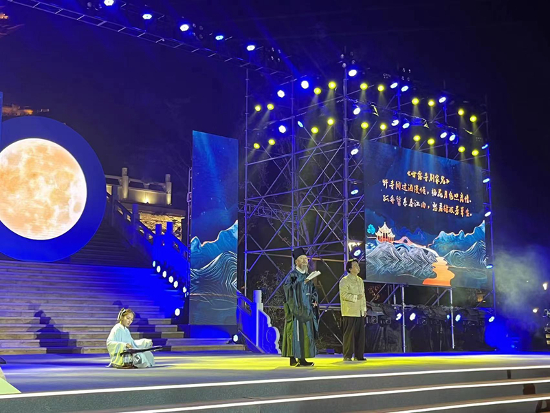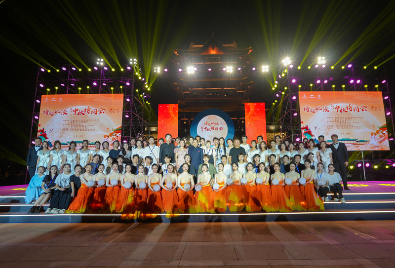 诗词会以“思念与团圆”为主题,采用诗朗诵、情景吟诵、舞蹈、评弹、音诗画等多种形式,让观众在传统节日与古典诗歌的独特魅力中感知诗意中秋。我校音乐与影视学院积极扩展校外艺术实践平台,共有93名师生参与诗词会演出,承担了舞蹈、器乐、独唱、朗诵等大部分节目,熊祖鹏教授演唱的《教我如何不想她》、崔倡和段苏珊老师演唱的《灯火里的中国》更是博得现场观众的阵阵掌声,为市民游客呈现了一场月光下的视听盛宴。