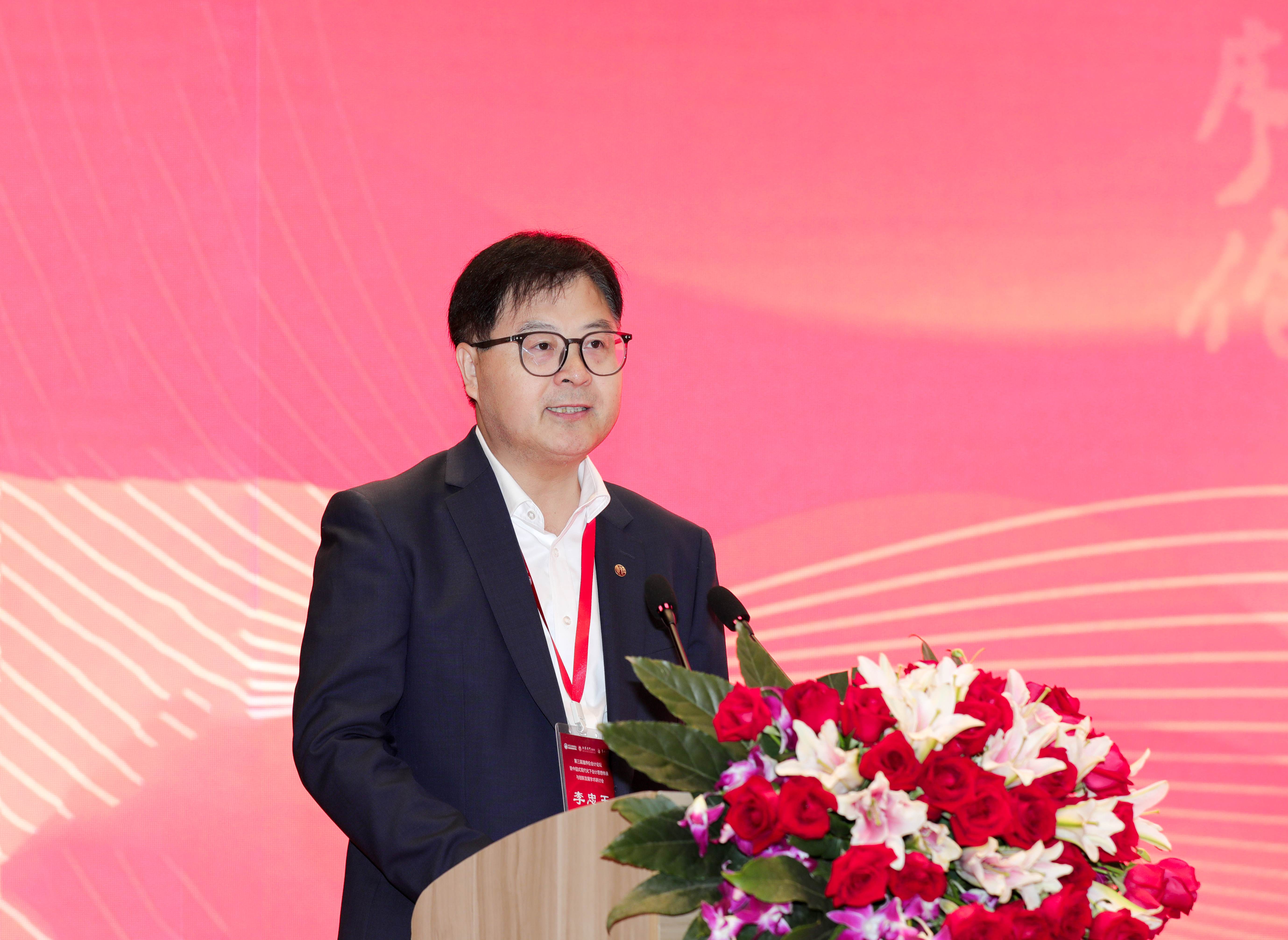 为纪念中国现代会计之父潘序伦先生诞辰130周年,10月21日,第三届潘序伦会计论坛暨中国式现代化下会计思想传承与创新发展学术研讨会在常州大学举办。党委常委、副校长李忠玉,上海立信会计金融学院党委副书记文选才,中国会计学会会计史专业委员会主任付磊,常州大学原副校长王卫星出席论坛。立信会计出版社社长华春荣,《财会通讯》杂志社社长、主编张少堂,《会计之友》杂志社社长、总编笑雪,以及来自全国高校的知名专家学者等200余人参加论坛。