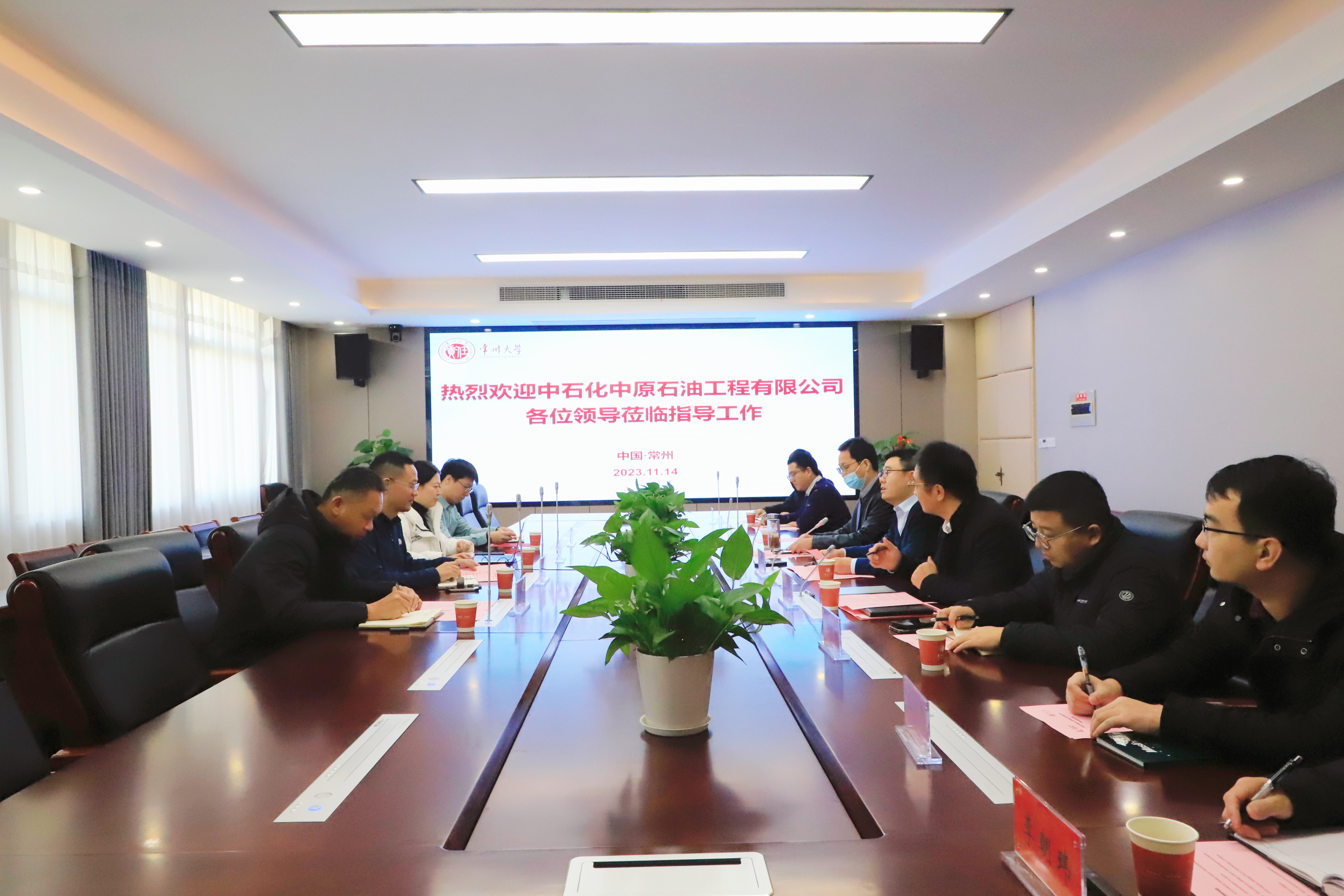 11月14日,中石化中原石油工程有限公司与常州大学产学研交流会在常州大学石油与天然气工程学院召开。中石化中原石油工程有限公司钻井工程技术研究院副院长胡建均,中石化钻完井液技术中心副主任单海霞,中石化中原石油工程有限公司钻井工程技术研究院华北项目部经理张麒麟、工艺所副所长杨玄到访参会。常州大学副校长王建浦,石油与天然气工程学院相关负责人,石工学院、环境学院、药学院部分教师参加会议。石油与天然气工程学院党委书记彭浩平主持会议。