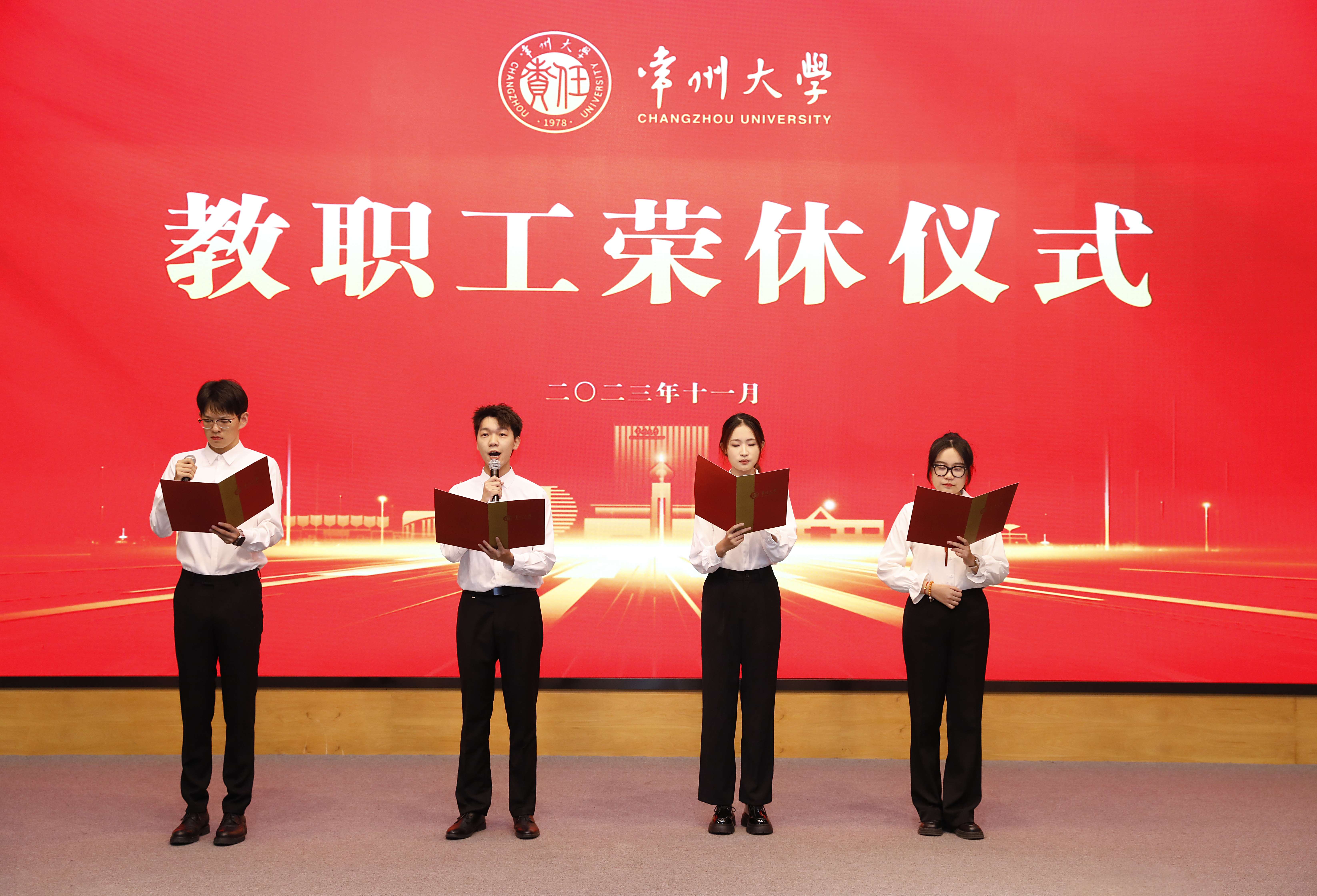 11月22日下午,学校在科教城校区文彰楼报告厅举行2023年常州大学教职工荣休仪式。党委书记徐守坤,党委副书记、校长陈海群,党委常委、副校长杨琳,党委常委、副校长李忠玉出席会议。2023年度荣休教职工、相关职能部门、荣休教职工所在单位负责人、青年教职工代表及学生代表参加会议。杨琳主持会议。