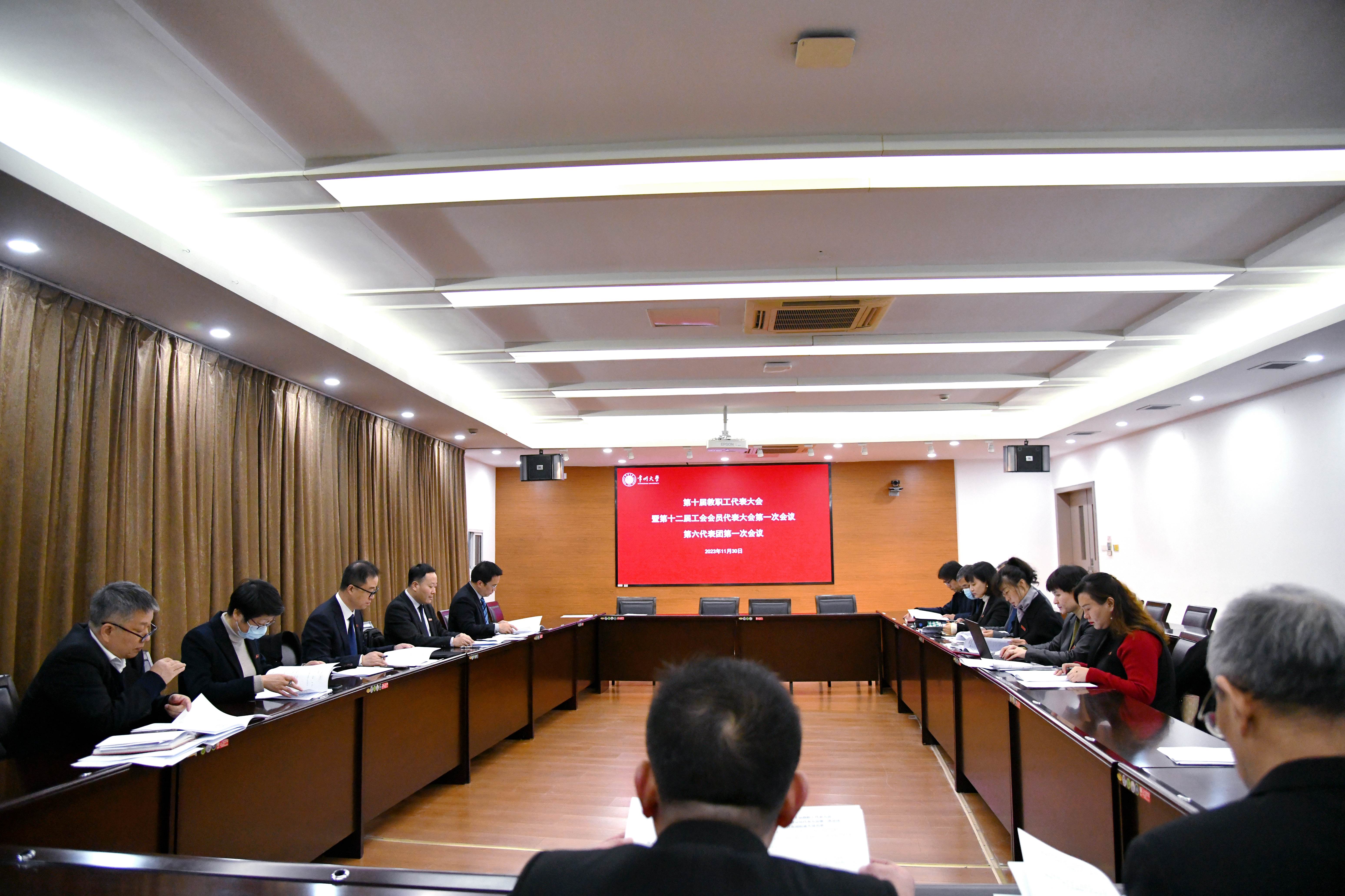 本次大会为期两天。第一次全体会议上,与会代表听取审议了行政工作报告、工会工作报告、学校财务预决算报告、提案工作报告、工会经费审查报告。11个代表团分别召开代表团会议,认真讨论了学校行政工作报告、工会工作报告及相关报告,认真讨论了“两代会”各专门委员会设置情况、组成原则、各类候选人建议名单及产生办法(草案),讨论了大会选举办法(草案)、大会决议(草案),推选了监票人。
