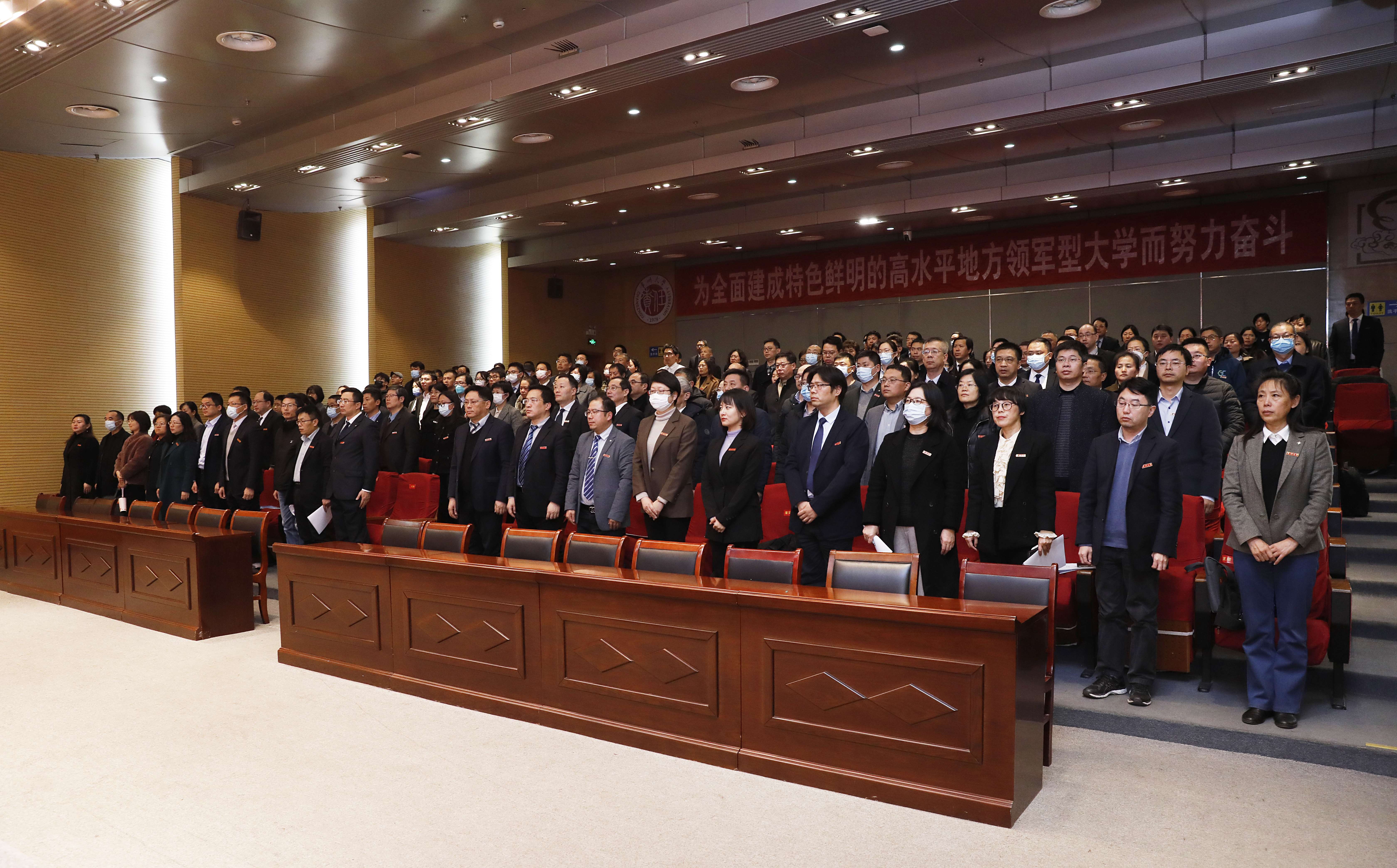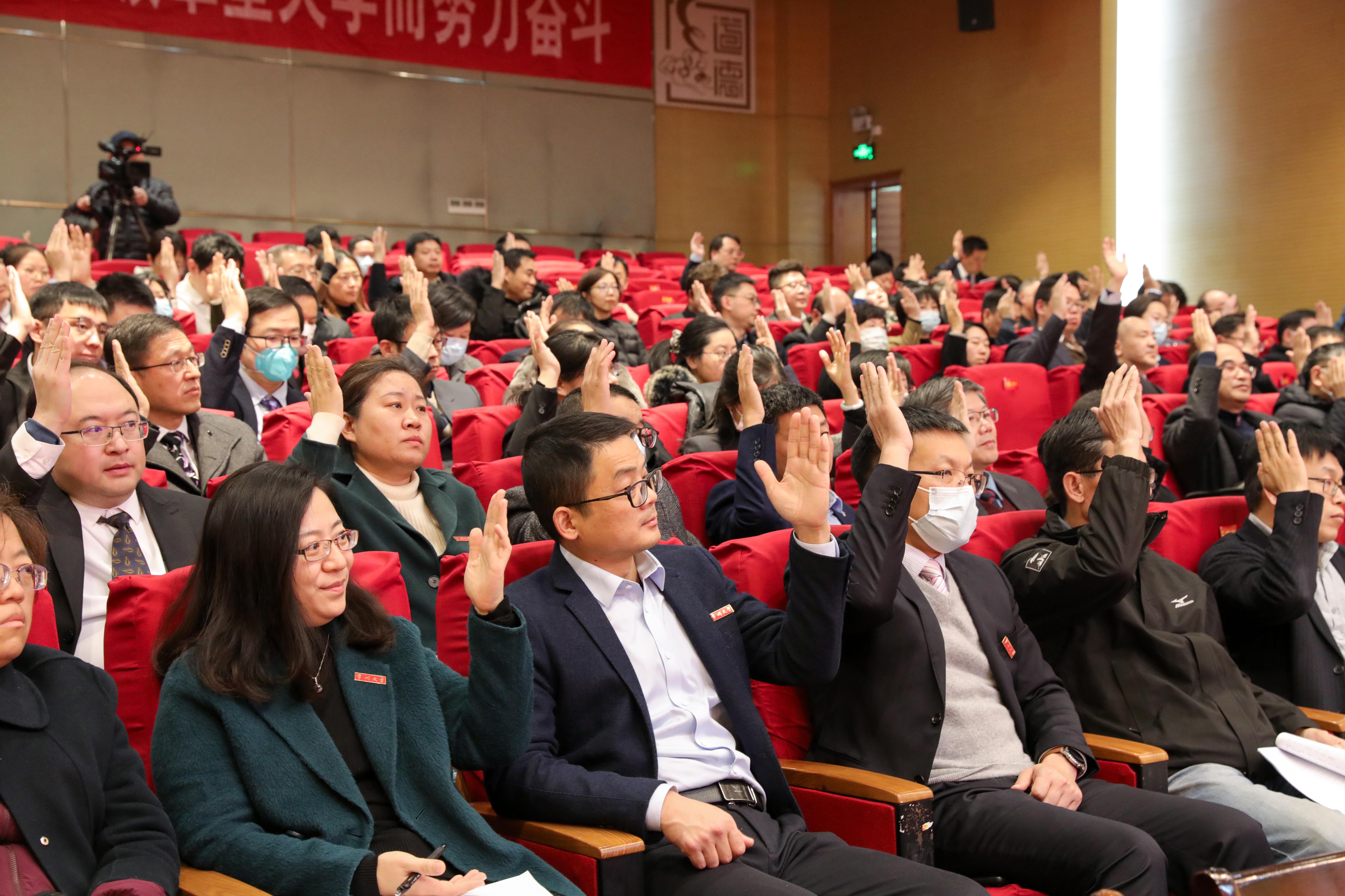 大会号召,全校上下要紧密团结在以习近平同志为核心的党中央周围,坚持以习近平新时代中国特色社会主义思想为指导,深入贯彻落实党的二十大精神,在学校党委的坚强领导下,统一思想认识,强化使命担当,以更加饱满的热情、更加顽强的奋斗、更加智慧的创造,踔厉奋发、埋头苦干,奋力谱写特色鲜明的高水平地方领军型大学建设新篇章!